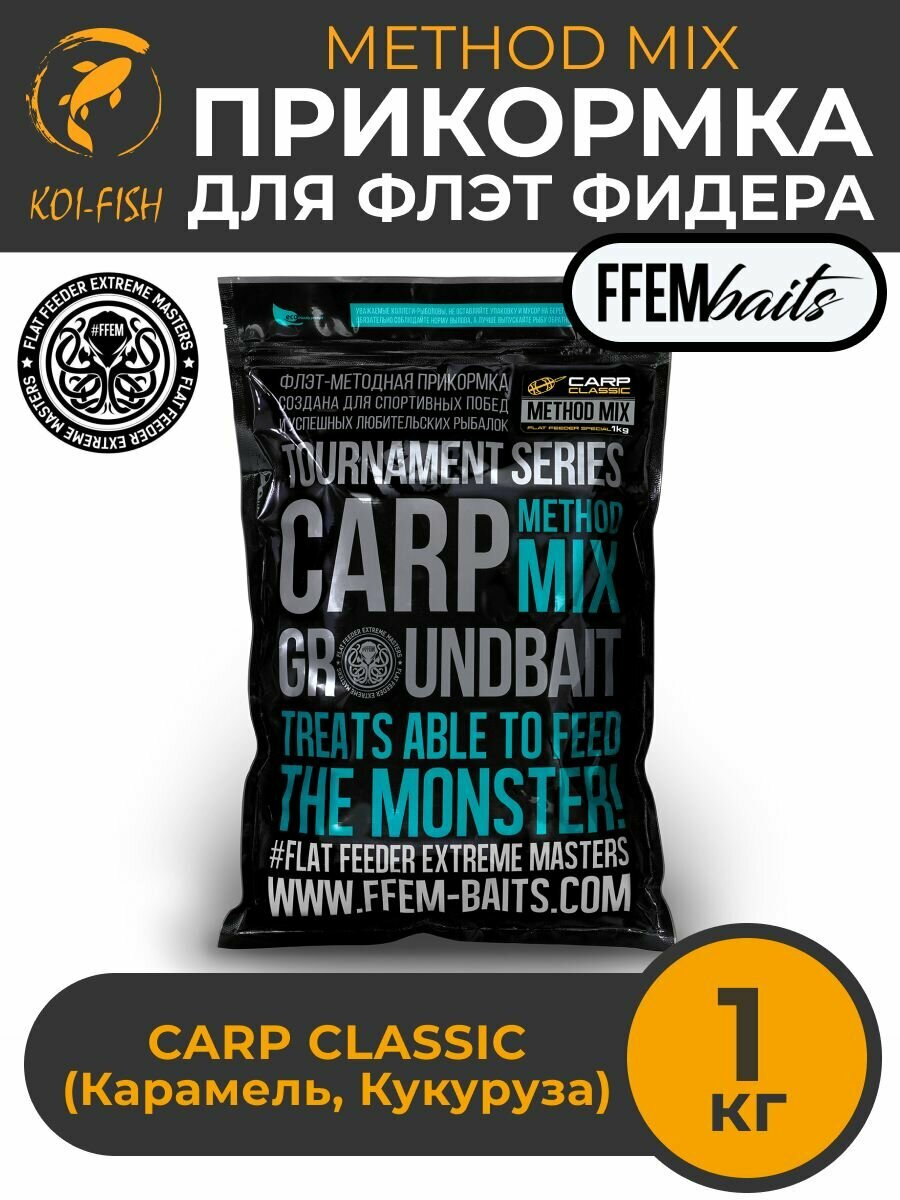 Купить FFEM METHOD MIX Carp Classic 1 кг (карамель и сладкая кукуруза)Прикормка для ловли карпа, Метод Микс, Флэт фидер, Flat Feeder, Бойлы вареные