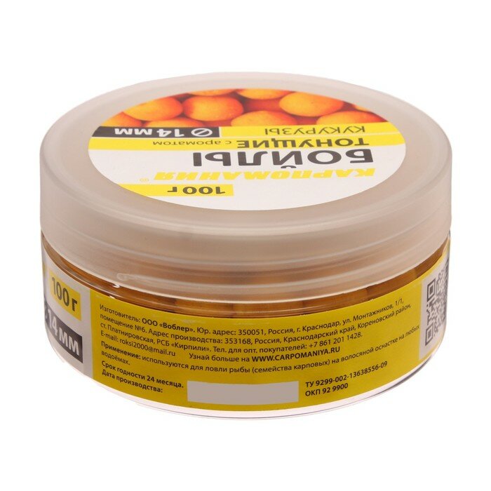 Тонущие бойлы со вкусом Кальмара-краба 14мм 100г банка