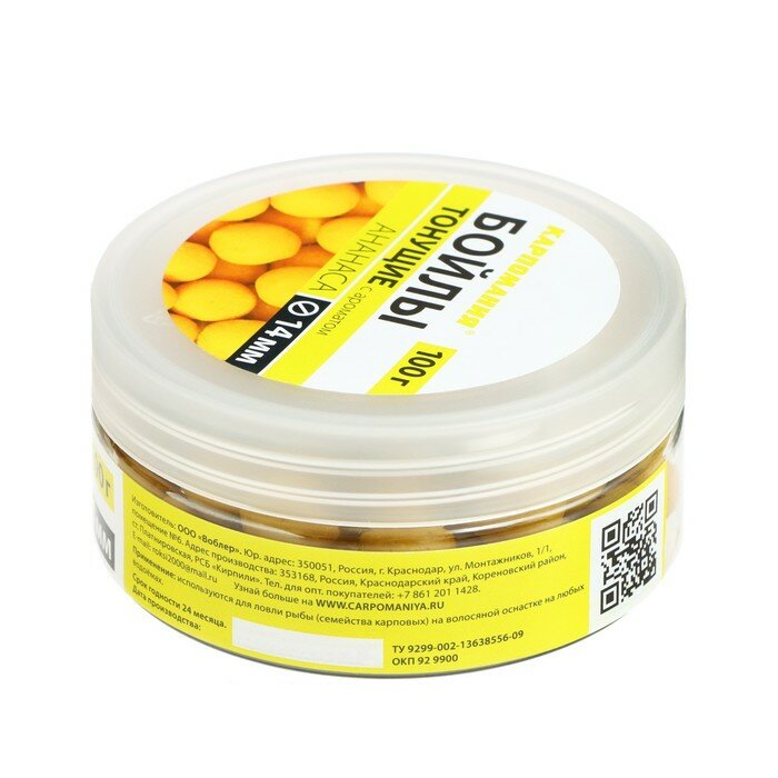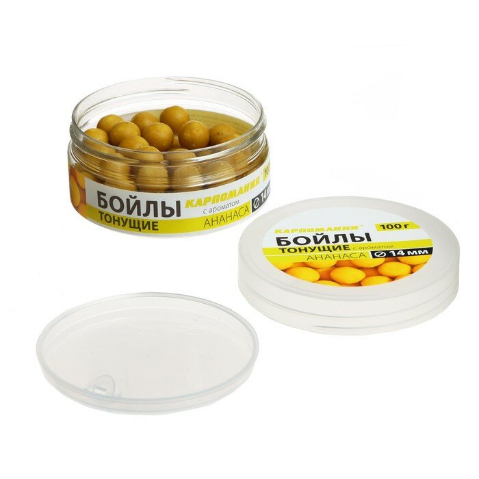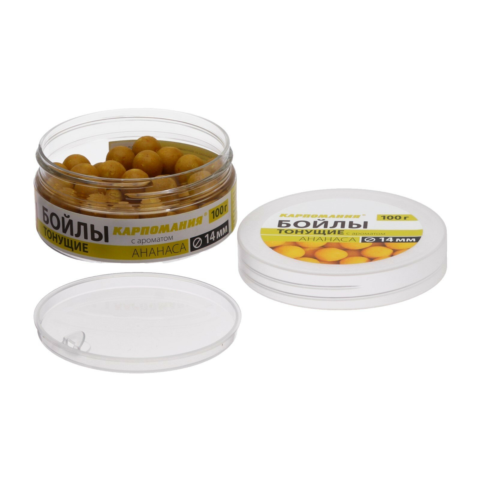 Купить Тонущие бойлы с ароматом Ананаса 14мм 100г банка