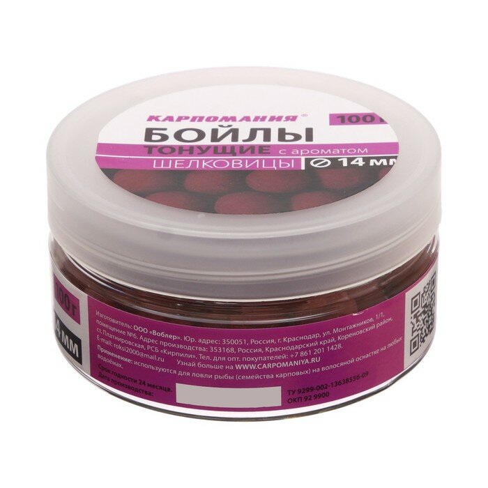 Ниже Вы можете прочитать отзывы на Тонущие бойлы с ароматом Шелковицы 14мм 100г банка, ознакомится с подробными характеристиками, посмотреть интересные обзоры и фотографии на Тонущие бойлы с ароматом Шелковицы 14мм 100г банка.