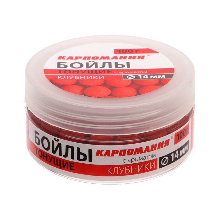 Купить Тонущие бойлы с ароматом Клубники 14мм 100г банка
