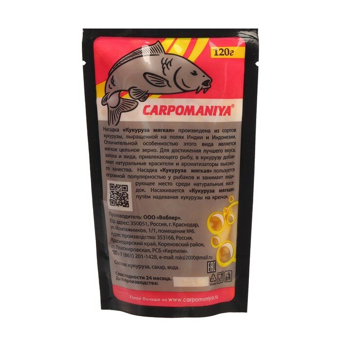 Кукуруза для ловли Амура 120г ( полумягкая цельная пакет)