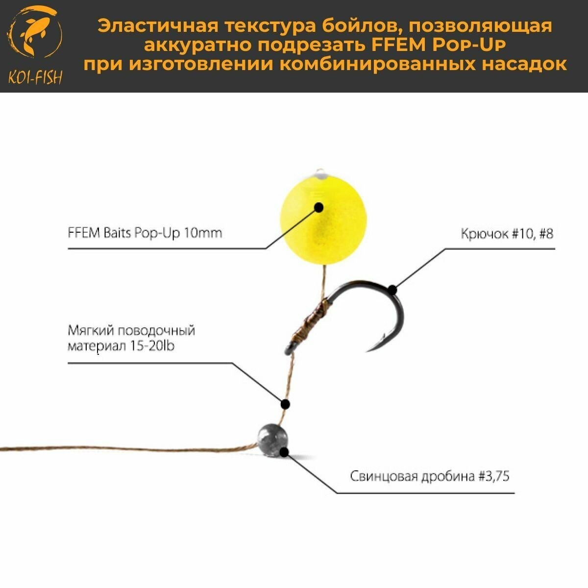 СохранитьПлавающие бойлы FFEM POP-UP SWEET SQUID 10мм, Сладкий Кальмар, 50мл (55 штук), жёлтый, плавающие насадочные поп-апы интересное: