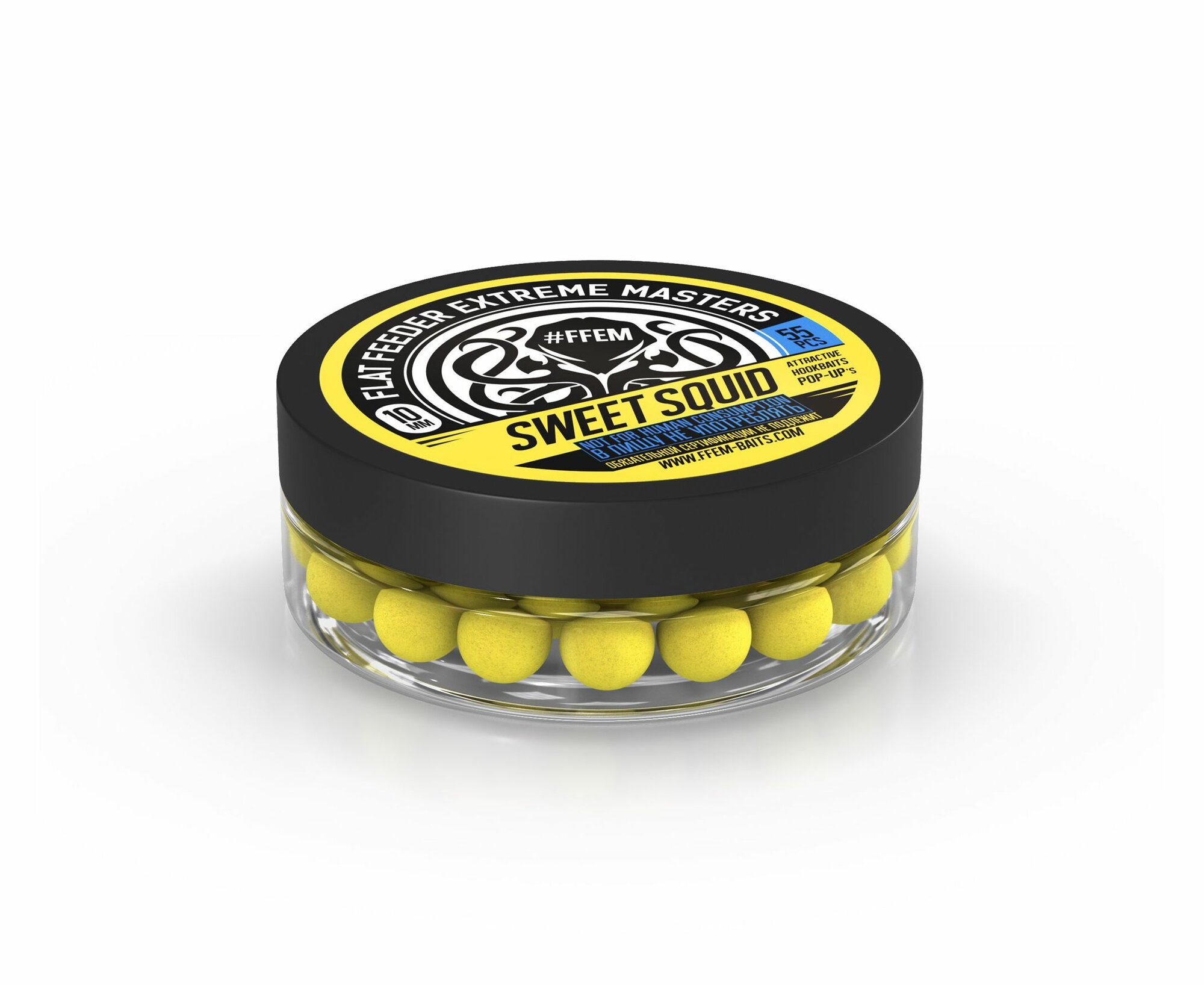 Плавающие бойлы FFEM POP-UP SWEET SQUID 10мм, Сладкий Кальмар, 50мл (55 штук), жёлтый, плавающие насадочные поп-апы