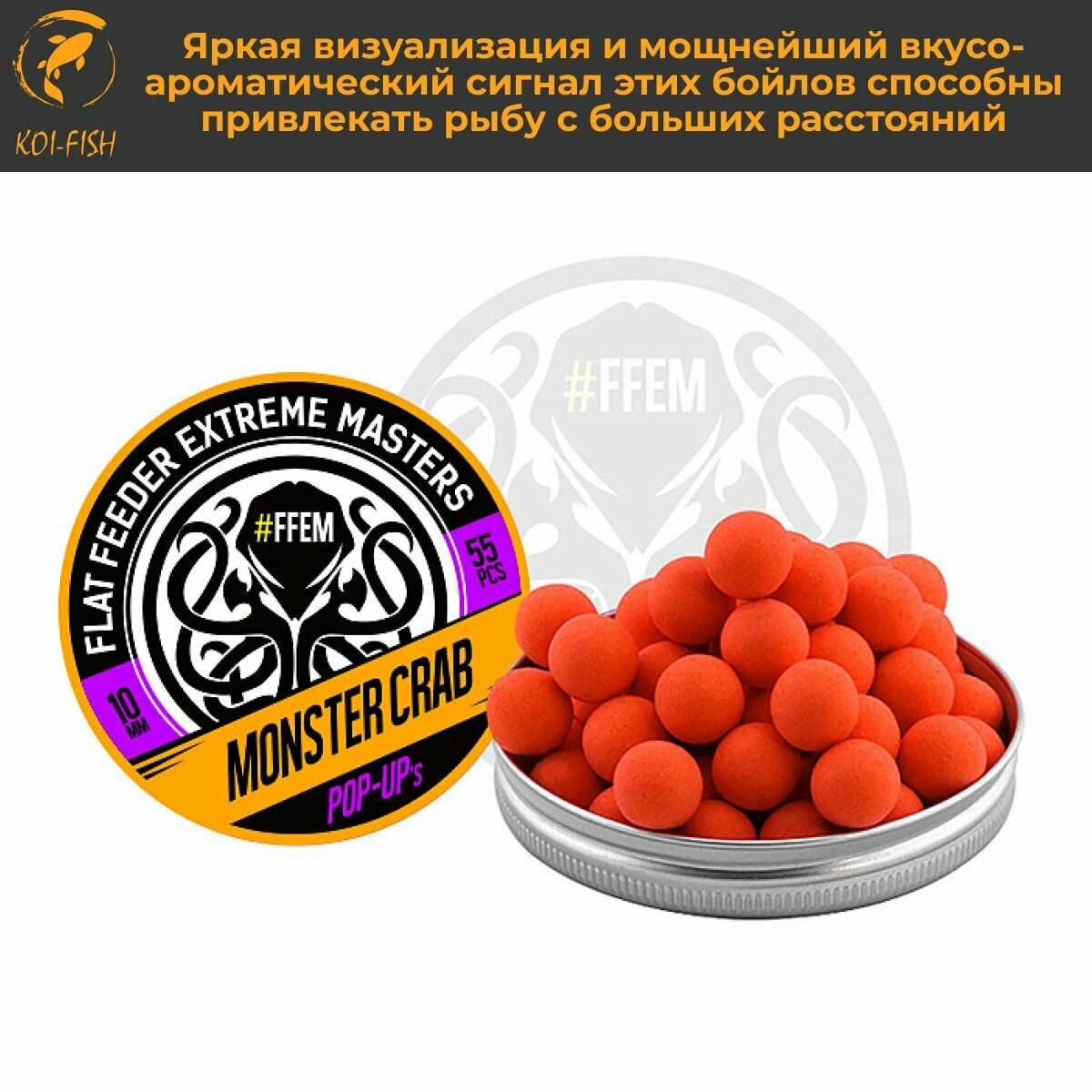 СохранитьПлавающие бойлы FFEM POP-UP MONSTER CRAB 10мм, Монстр Краб, 50мл (55 штук), оранжевый, плавающие насадочные поп-апы интересное: