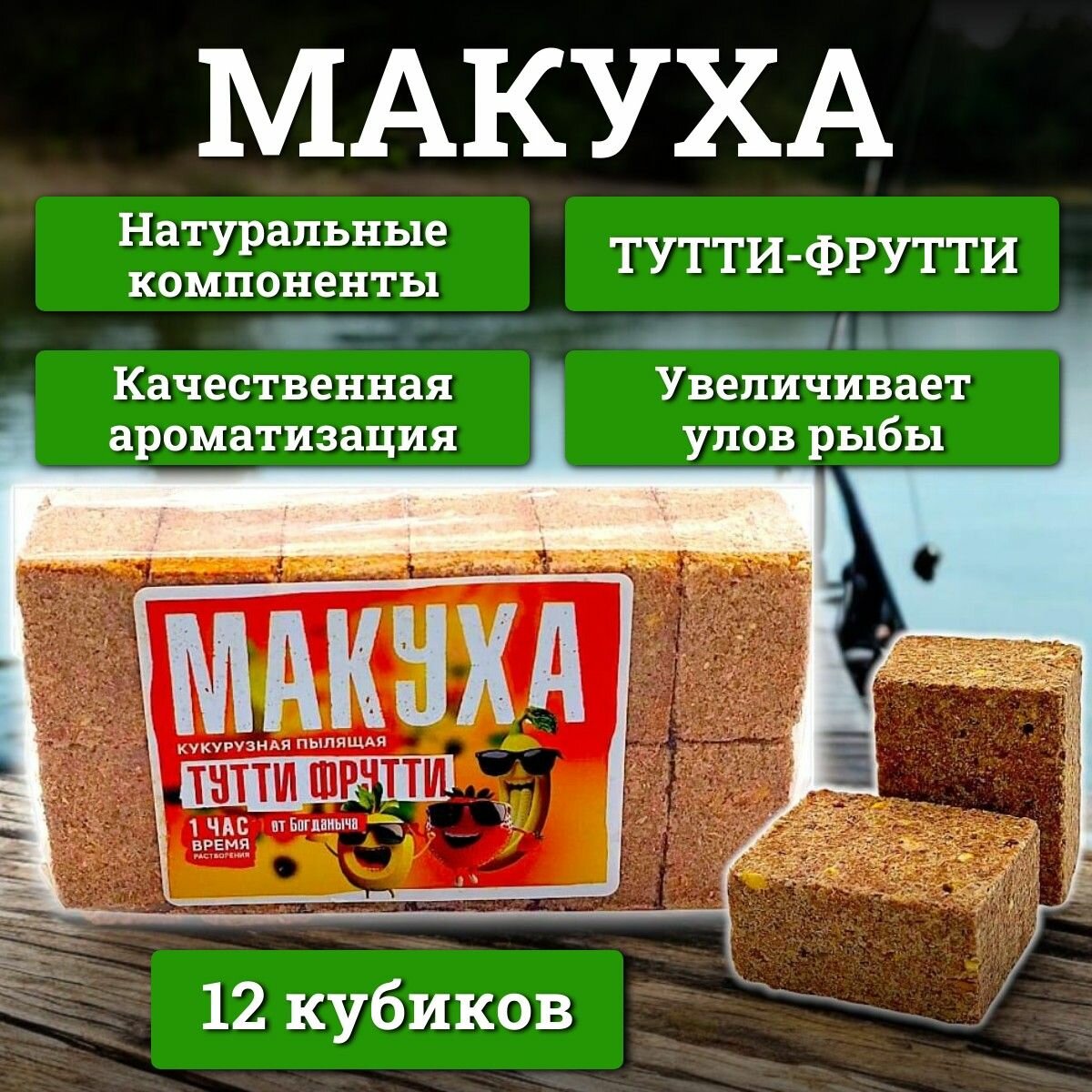 СохранитьМакуха пылящая с отверстиями для крючка от Богданыча "Тутти-Фрутти" 12 кубиков / жмых интересное: