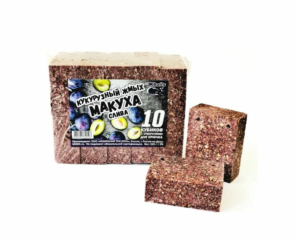 Кукурузный жмых-макуха с отверстиями для крючка "Слива" 10 кубиков / 320г