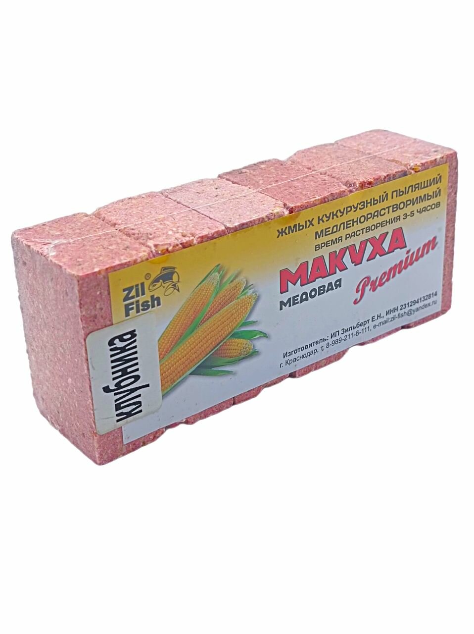 Купить Макуха медовая медленно-растворимая с отверстиями для крючка "Клубника" 6 кубиков
