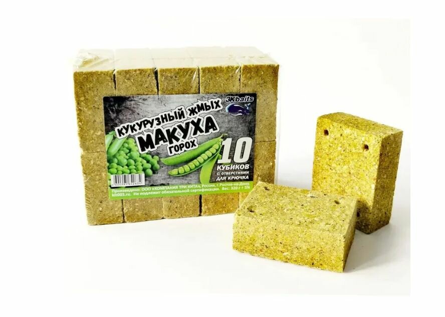 Кукурузный жмых-макуха с отверстиями для крючка "Горох" 10 кубиков / 320г
