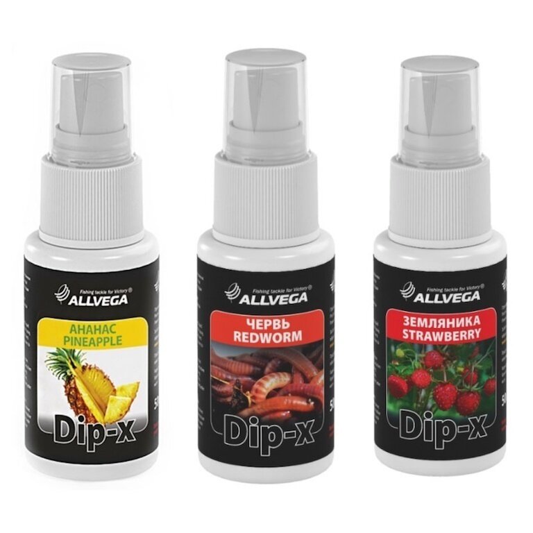 Купить Ароматизатор-спрей для рыбалки ALLVEGA Dip-X Ананас, Червь, Земляника 3 флакона по 50 мл