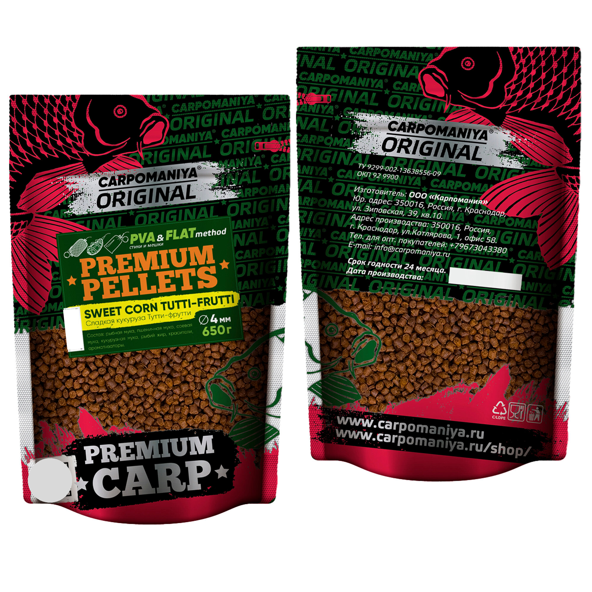 Купить PELLETS SWEET CORN + TUTTI-FRUTTI (сладкая кукуруза + тутти-фрутти) 4мм пакет 650г
