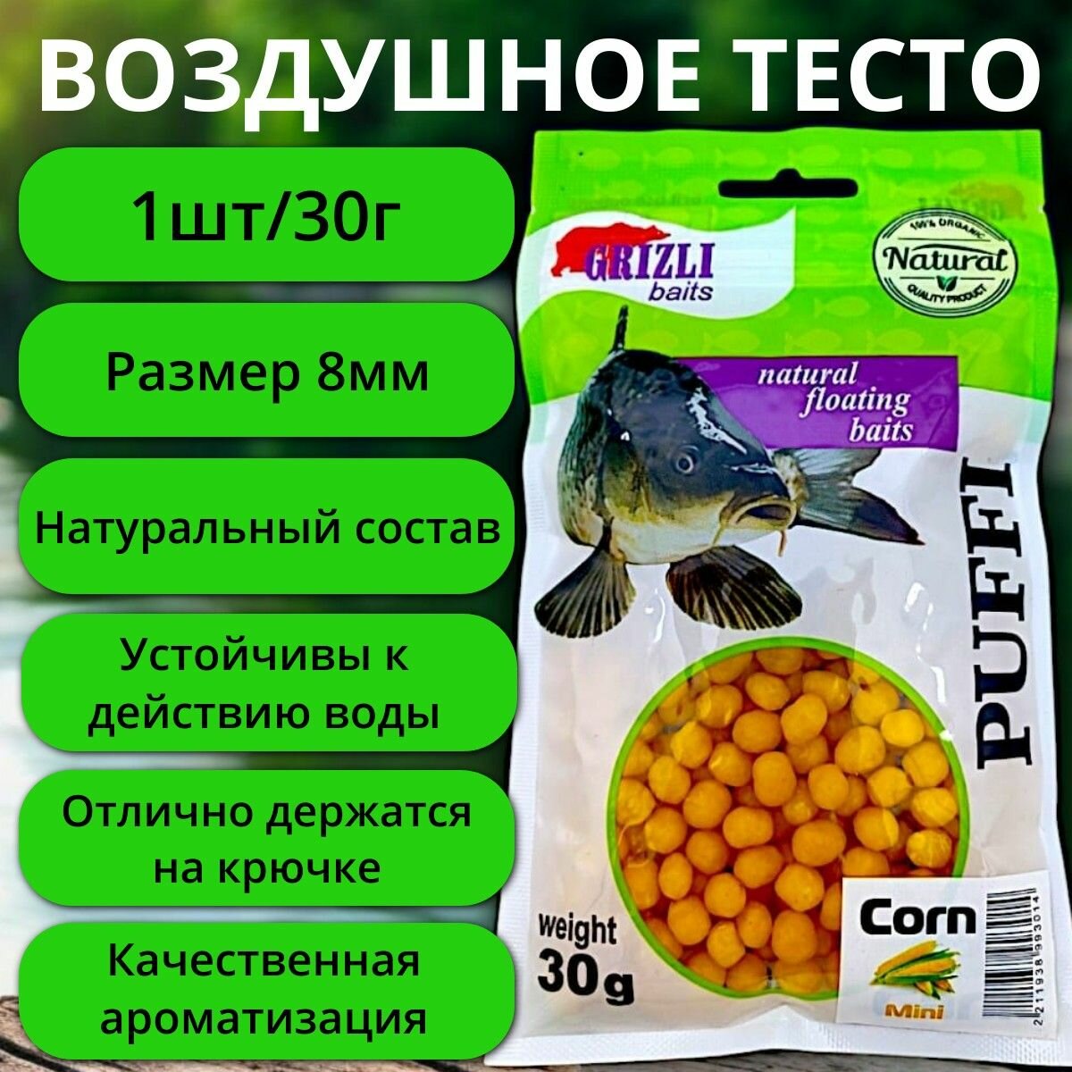 Купить Воздушное тесто для рыбалки Puffi "Кукуруза" - 8мм / 30г