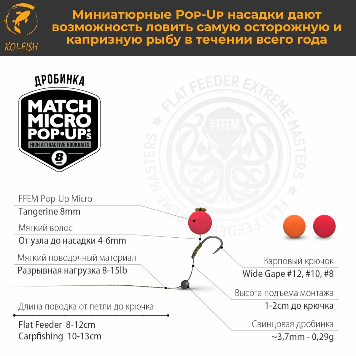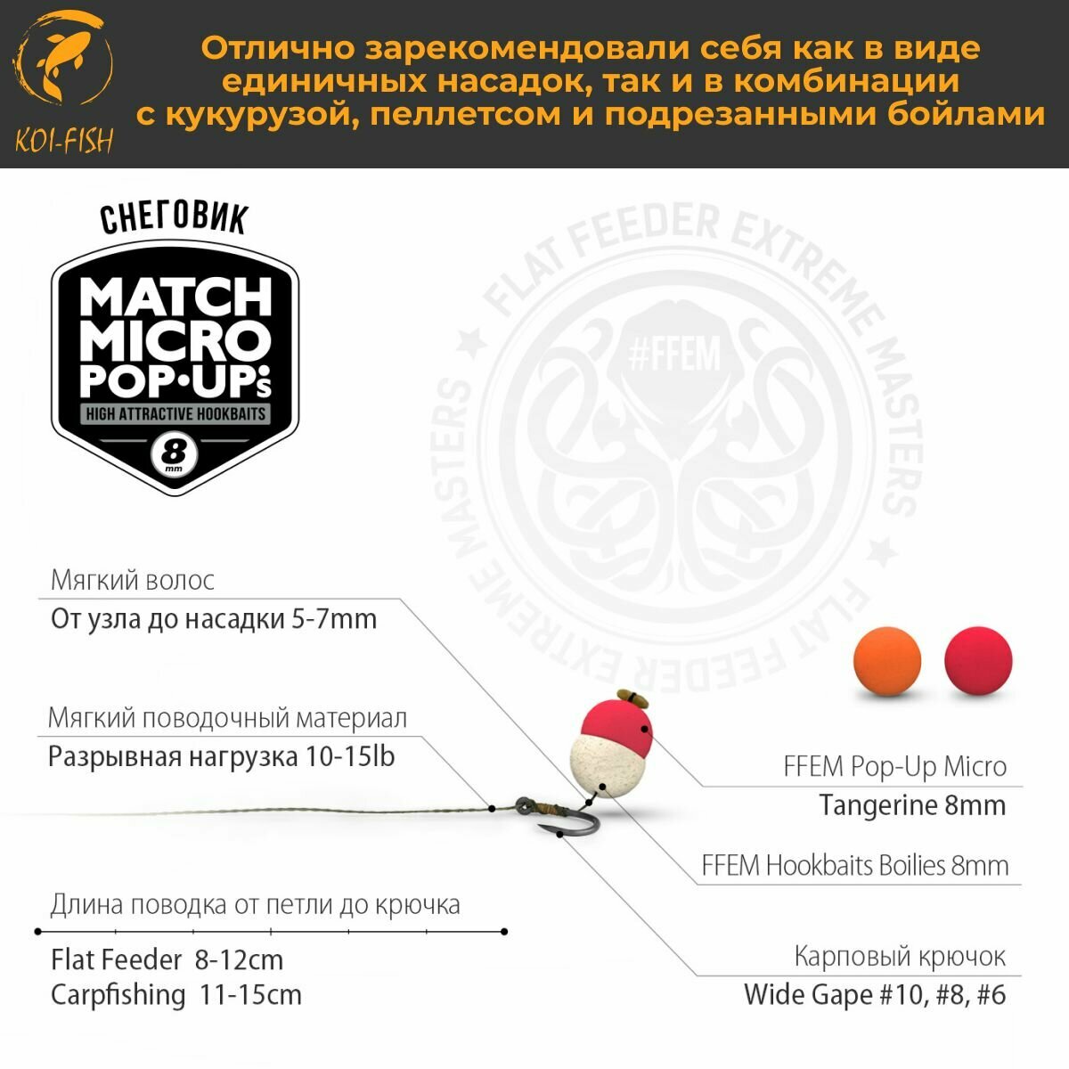 СохранитьПлавающие бойлы Match Micro POP-UP 8 мм Tangerine Мандарин, насадочные поп-ап / FFEM Pop-Up Micro 8mm интересное: