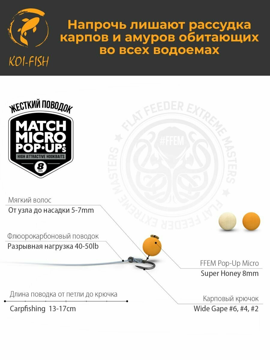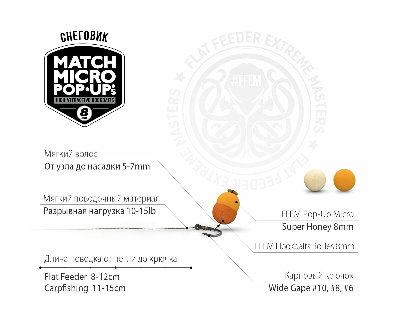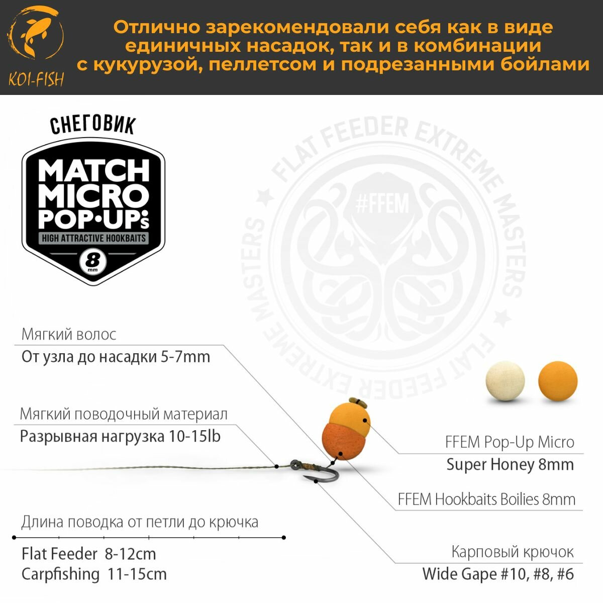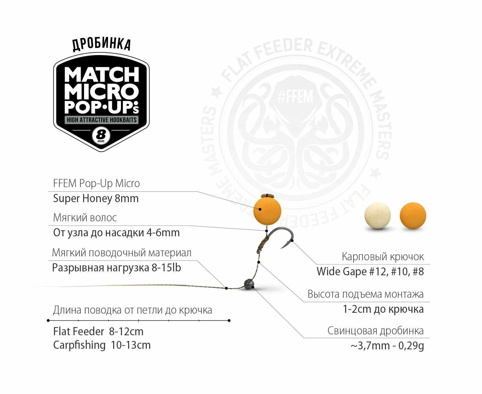 Купить Плавающие бойлы Match Micro POP-UP 8 мм Super Honey Мёд, насадочные поп-ап / FFEM Pop-Up Micro 8mm