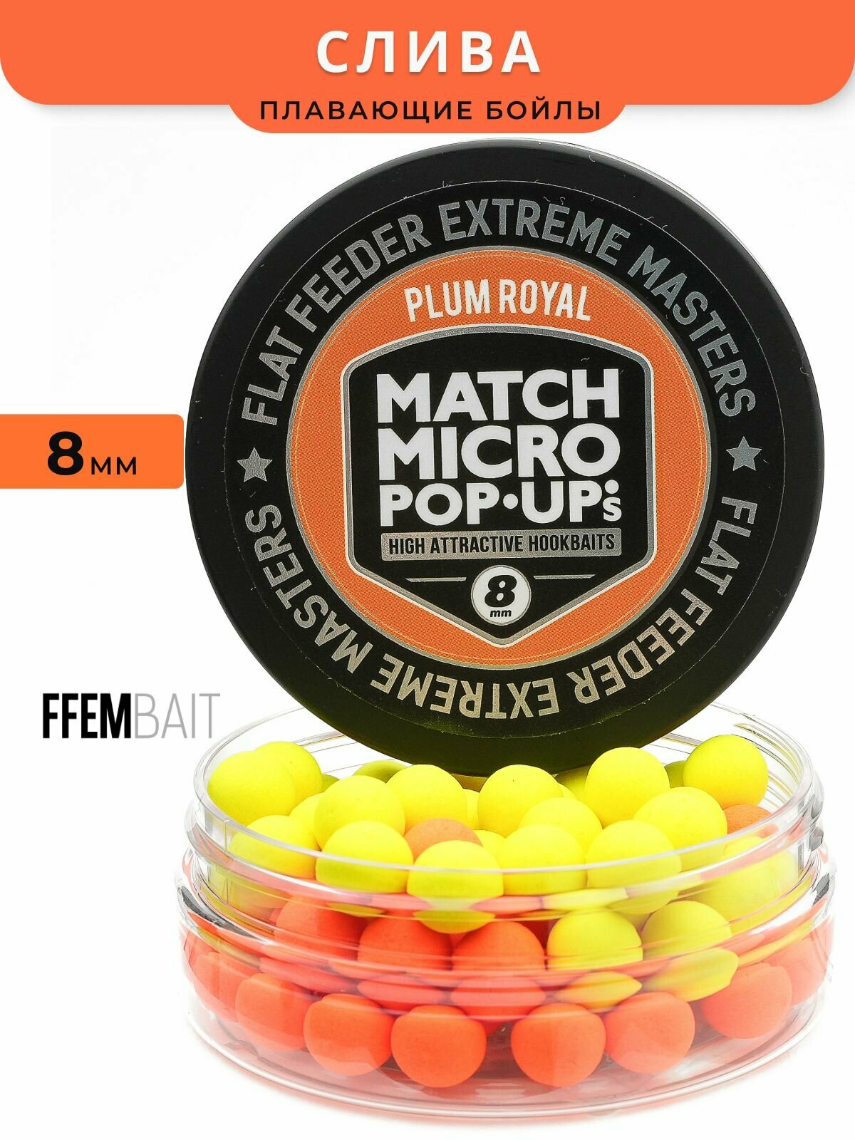 Плавающие бойлы Match Micro POP-UP 8 мм Tangerine Мандарин, насадочные поп-ап / FFEM Pop-Up Micro 8mm