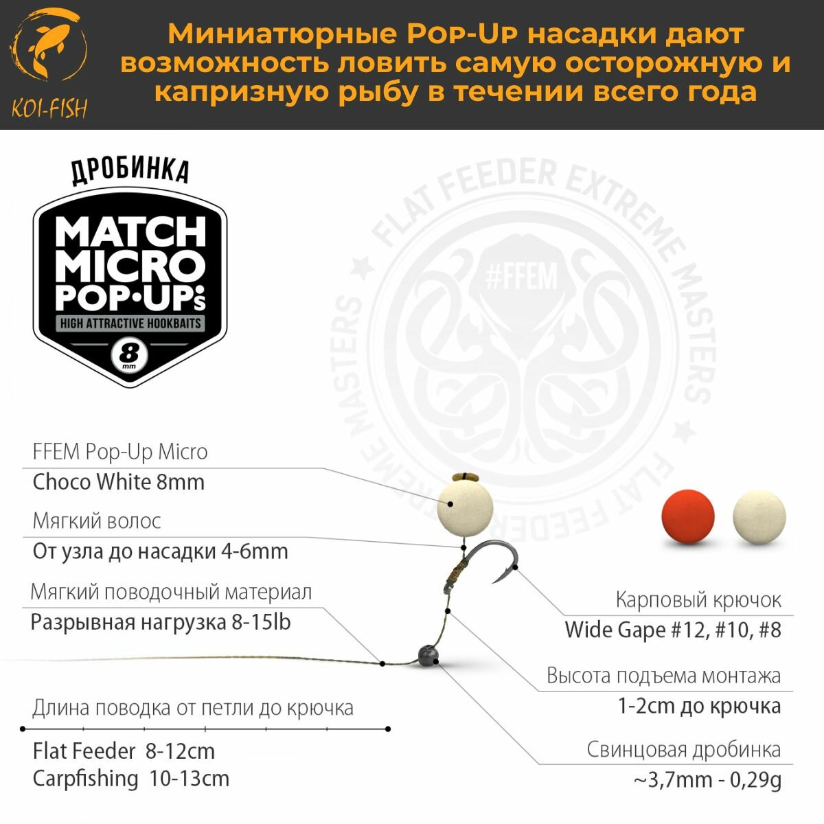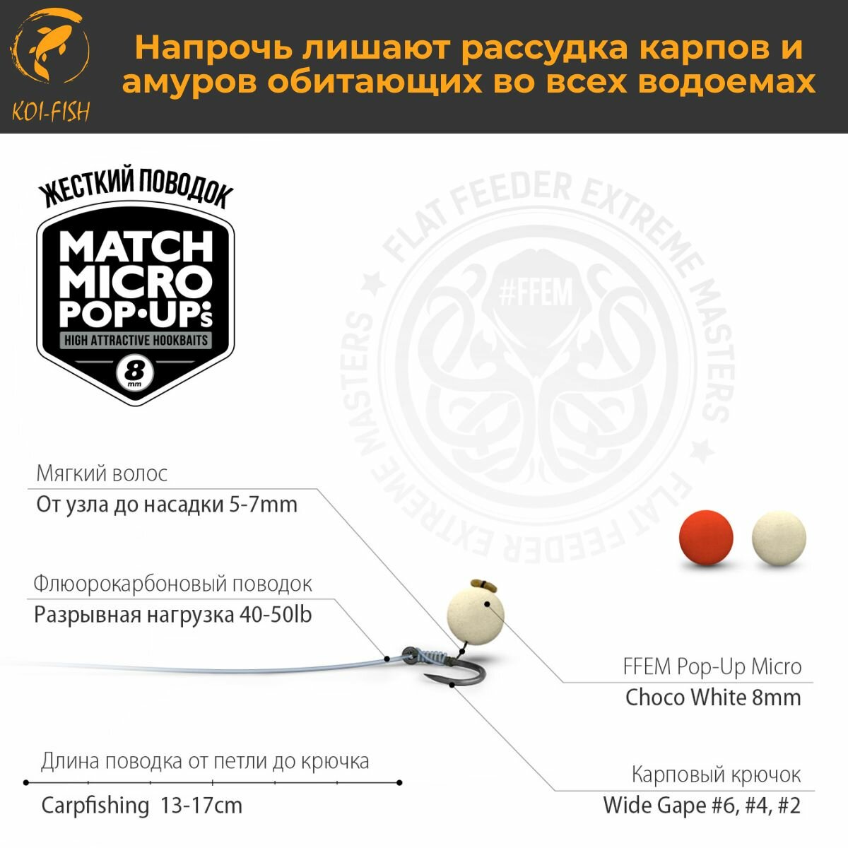 СохранитьПлавающие бойлы Match Micro POP-UP 8 мм Choco White Шоколад, насадочные поп-ап / FFEM Pop-Up Micro 8mm интересное: