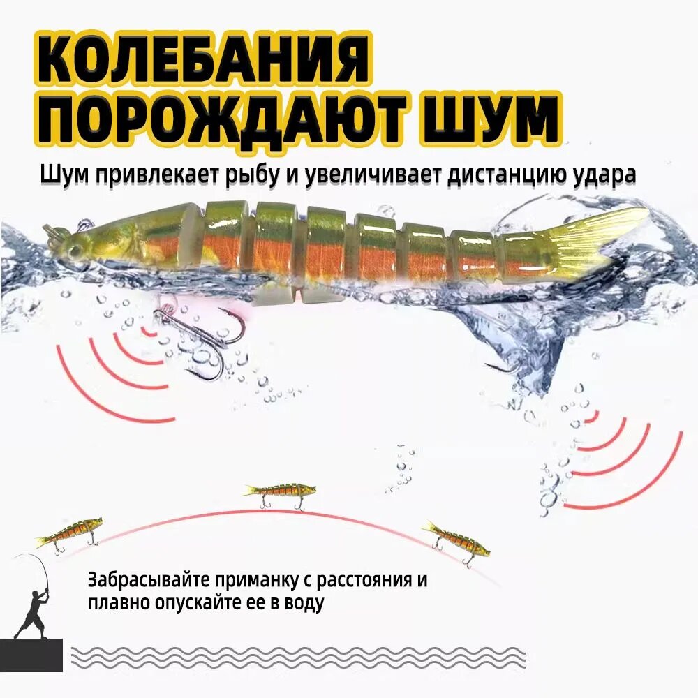 Рыболовный воблер 1 шт, для хищника, реалистичный дизайн, 7 сегментов,суспендер свимбейт , 10 см, 15г