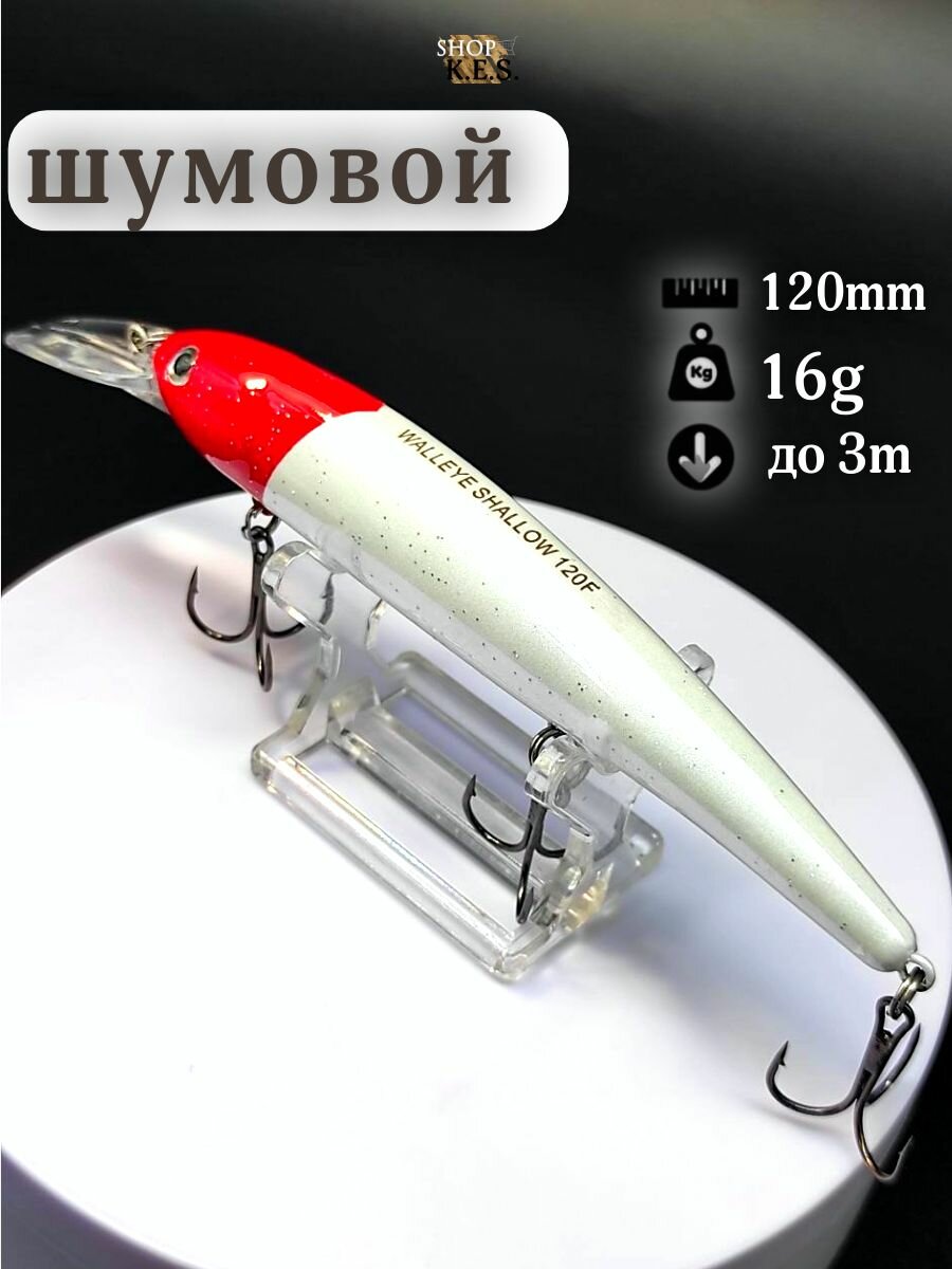 Воблер Бандит Минноу красноголовый 120мм 16гр с заглублением 2-3м / Приманка воблер для троллинга на щуку, судака интересное: