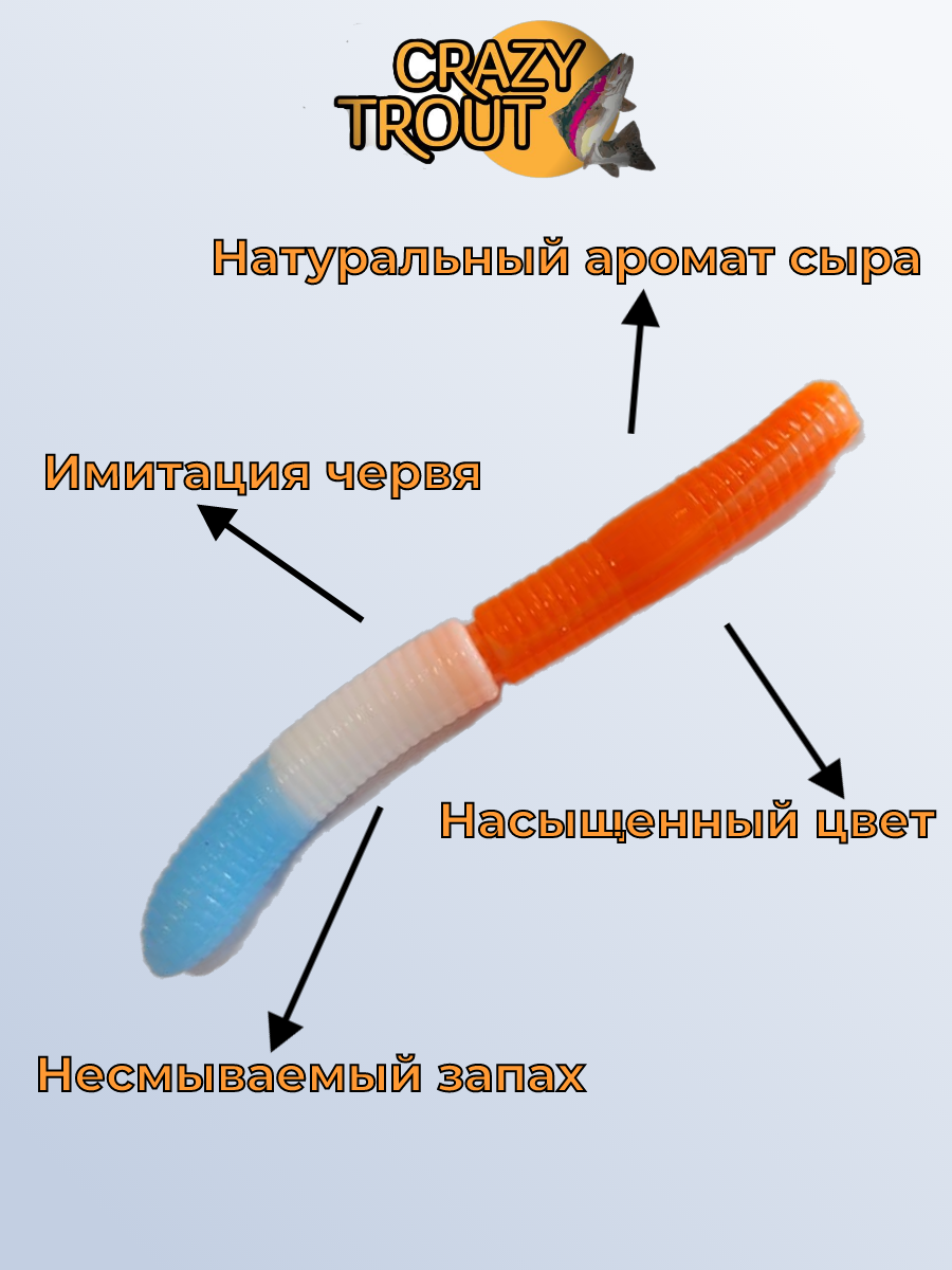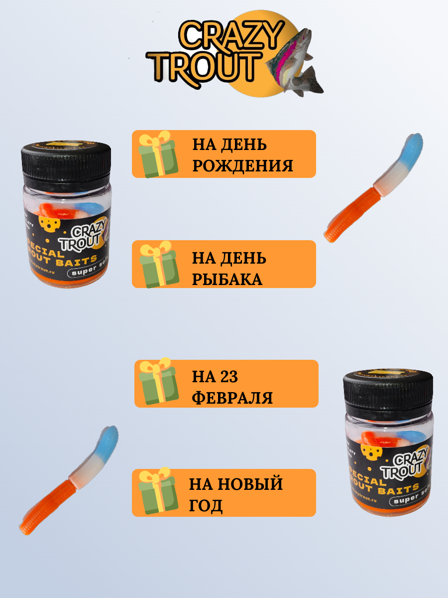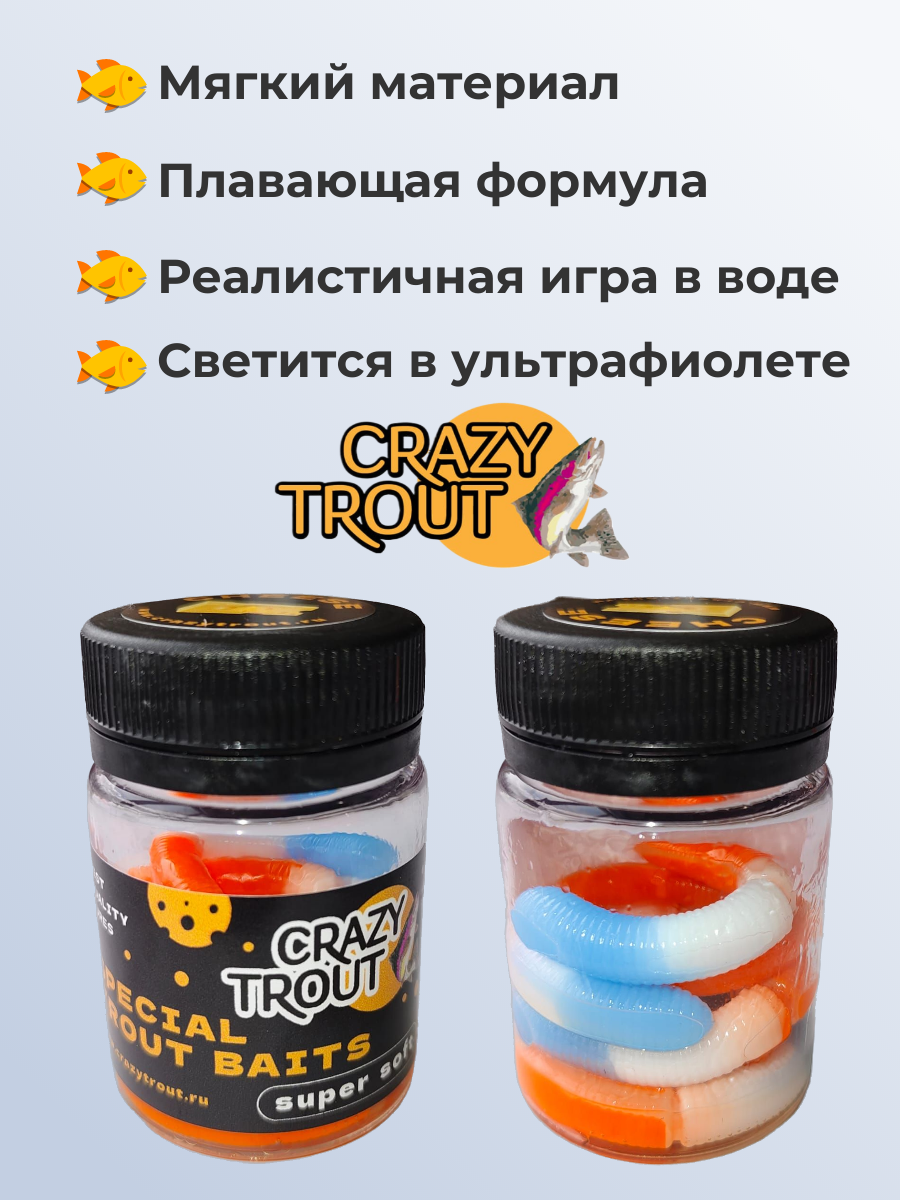 CRAZY TROUT / Силиконовая приманка для ловли форели FAT WORM интересное: