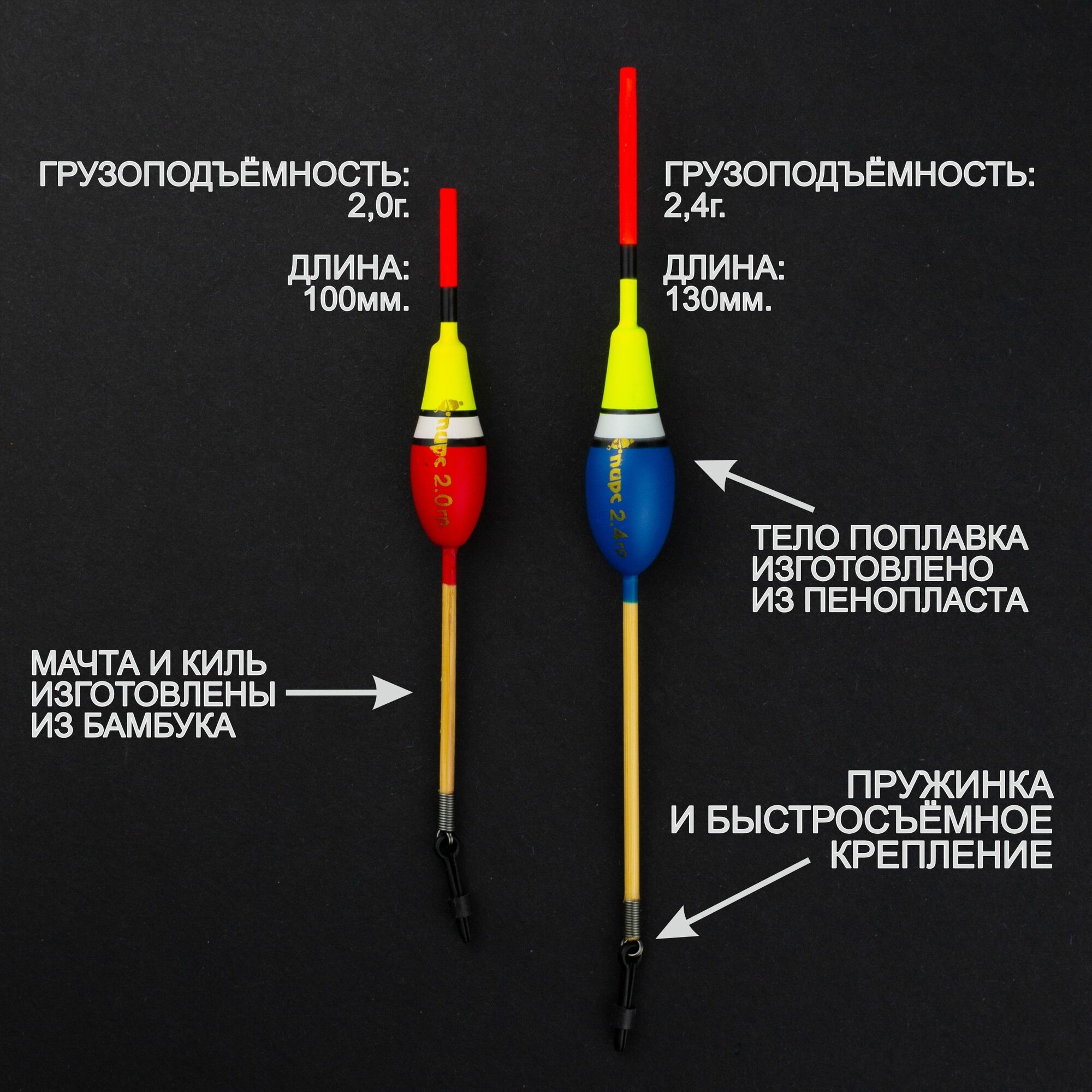 Поплавки рыболовные пенопластовые А-16 и А-18 (2 штуки), пирс