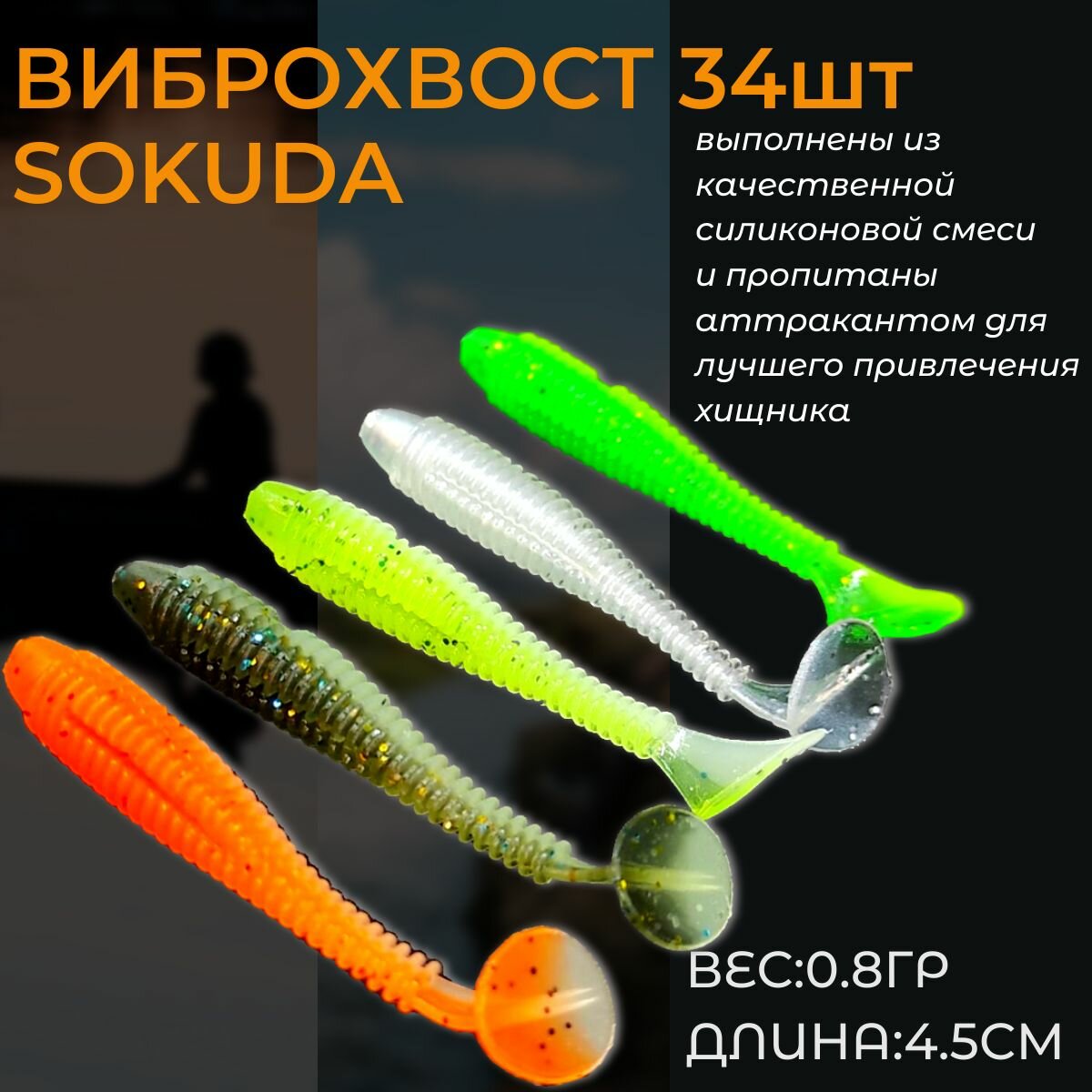 Силиконовая приманка SOKUDA 0.8гр 4.5см 34шт виброхвост для рыбалки интересное: