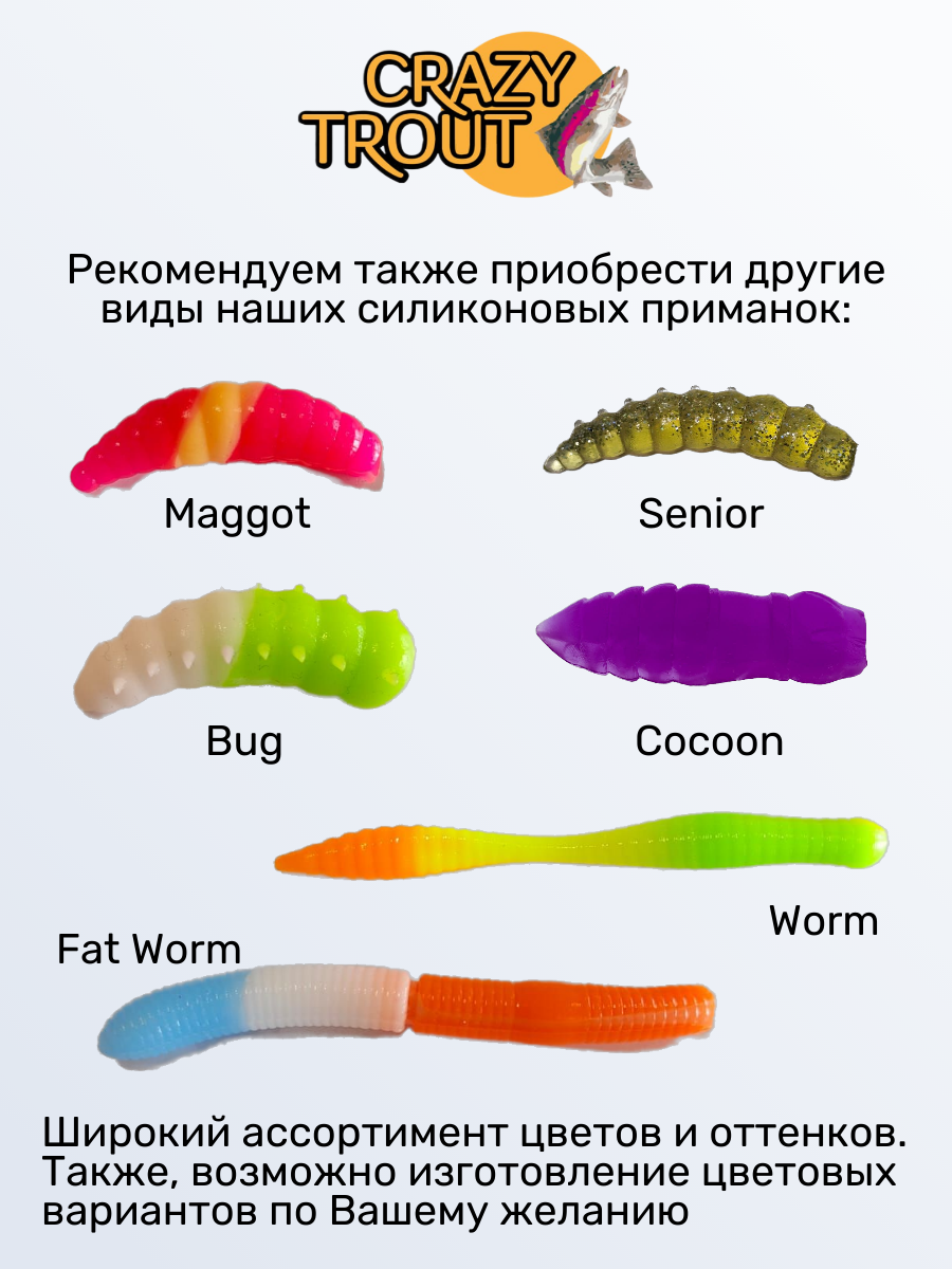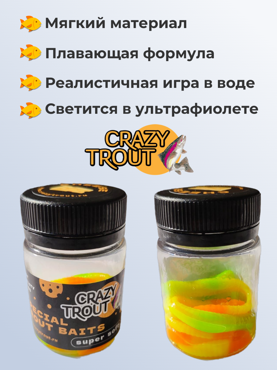 CRAZY TROUT / Силиконовая приманка для ловли форели WORM италия