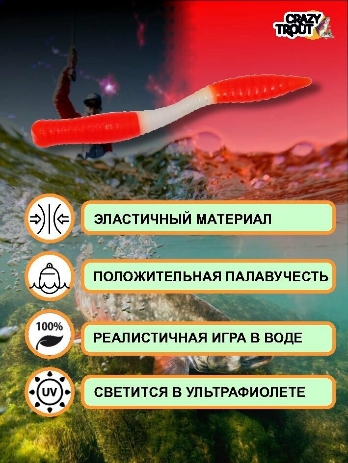 CRAZY TROUT / Силиконовая приманка для ловли форели WORM Зенит