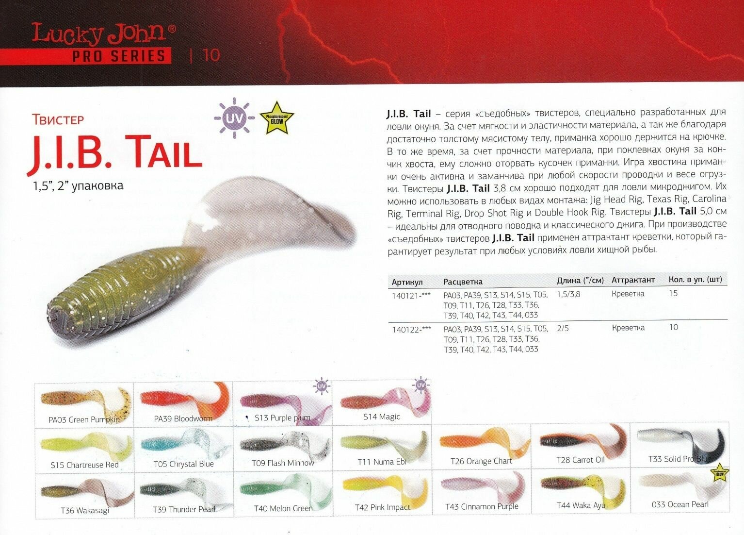 Ниже Вы можете прочитать отзывы на Мягкая приманка Lucky John J.I.B TAIL 1.5in (38 мм), цвет T40, 15 шт., ознакомится с подробными характеристиками, посмотреть интересные обзоры и фотографии на Мягкая приманка Lucky John J.I.B TAIL 1.5in (38 мм), цвет T40, 15 шт..