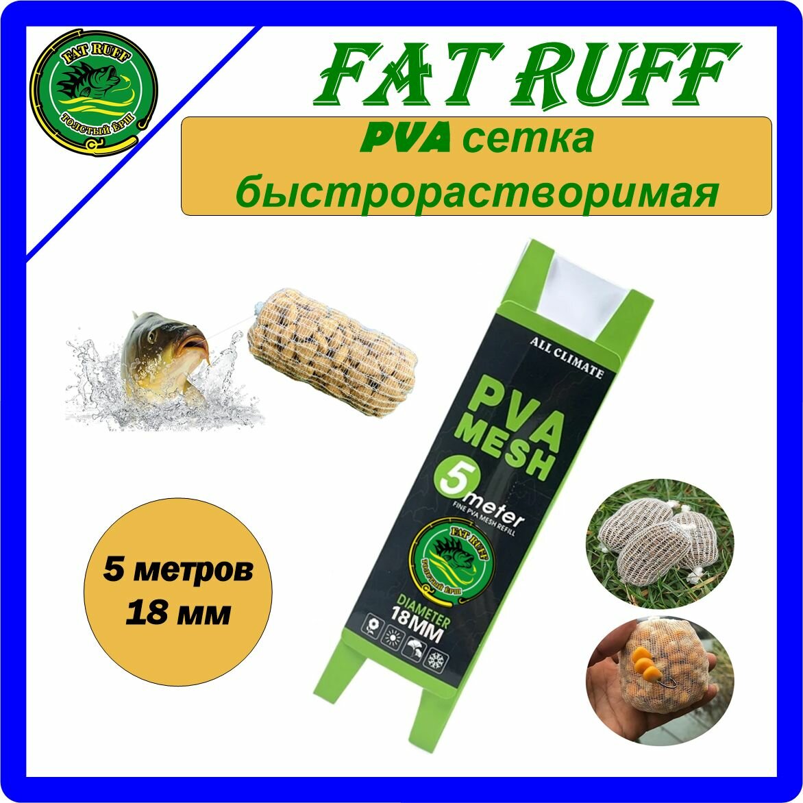Купить FAT RUFF быстрорастворимая ПВА-сетка для ловли карпа, карася. D-18мм, 5 метров