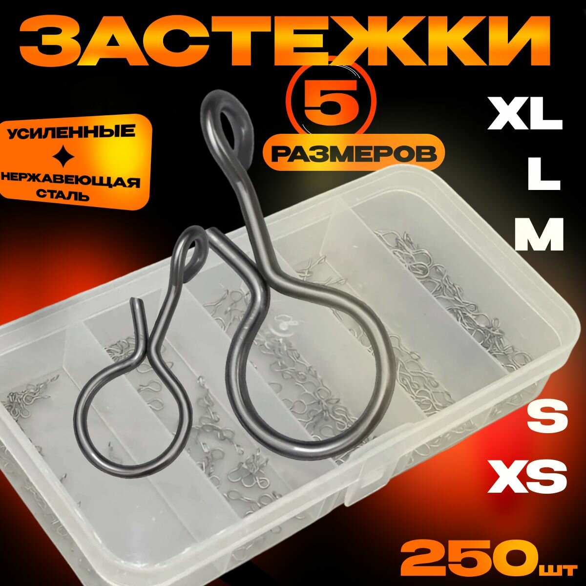 Купить Застежки быстросъем для рыбалки, набор 250шт (5 размеров), застежки в коробке, карабин для рыбалки, нахлыст