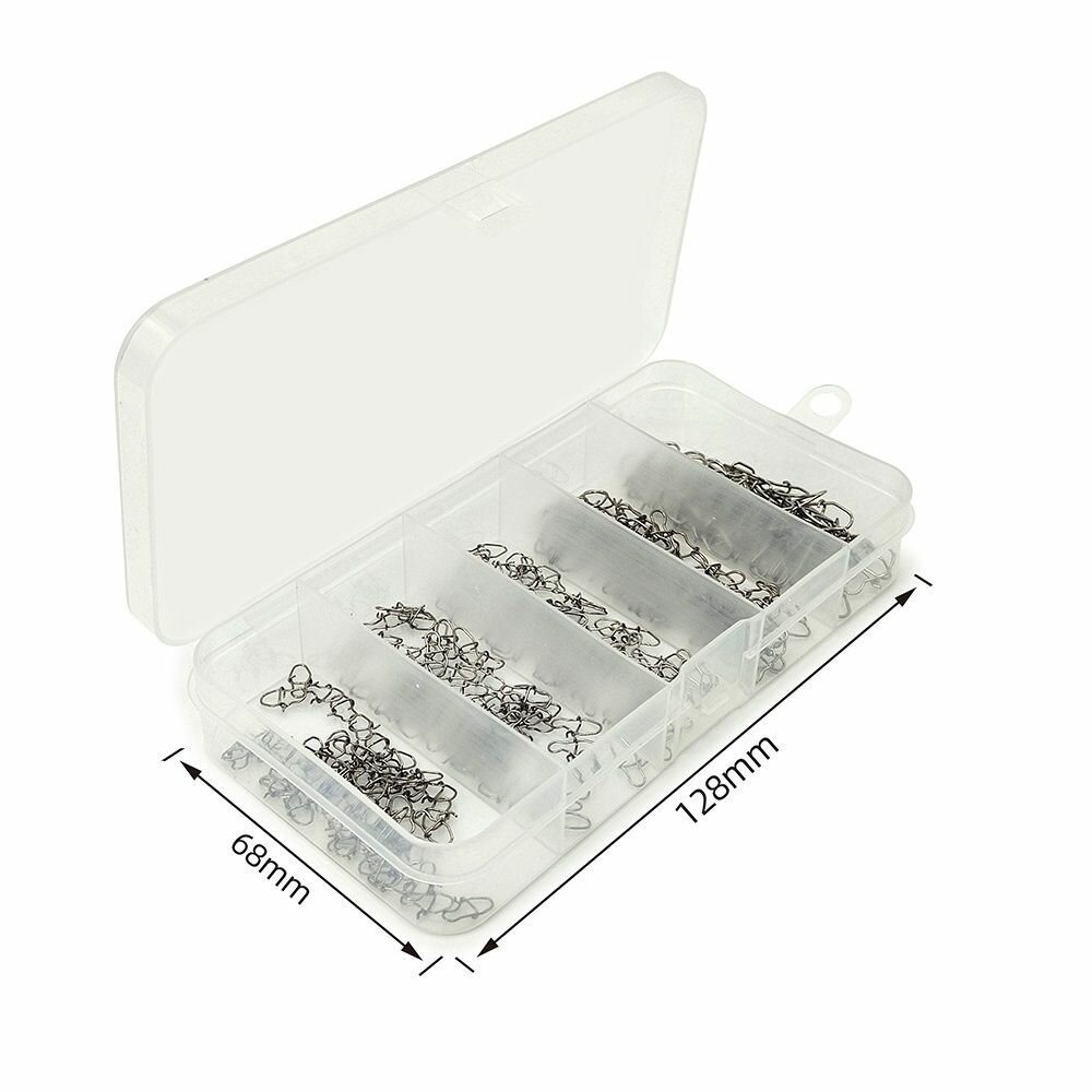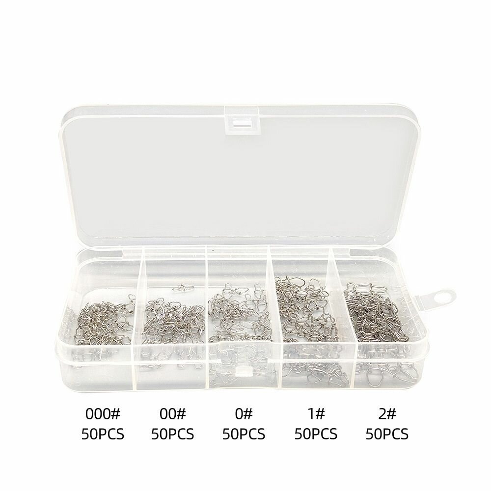 Застежки быстросъем для рыбалки, набор 250шт (5 размеров), застежки в коробке, карабин для рыбалки, нахлыст
