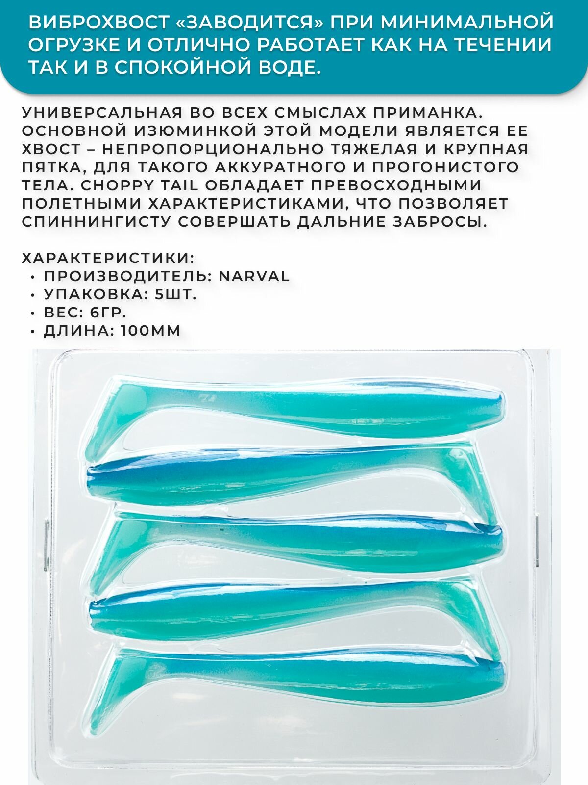 Приманка силиконовая Narval Choppy Tail 10cm #016-Blue Mint / Мягкая приманка для джига