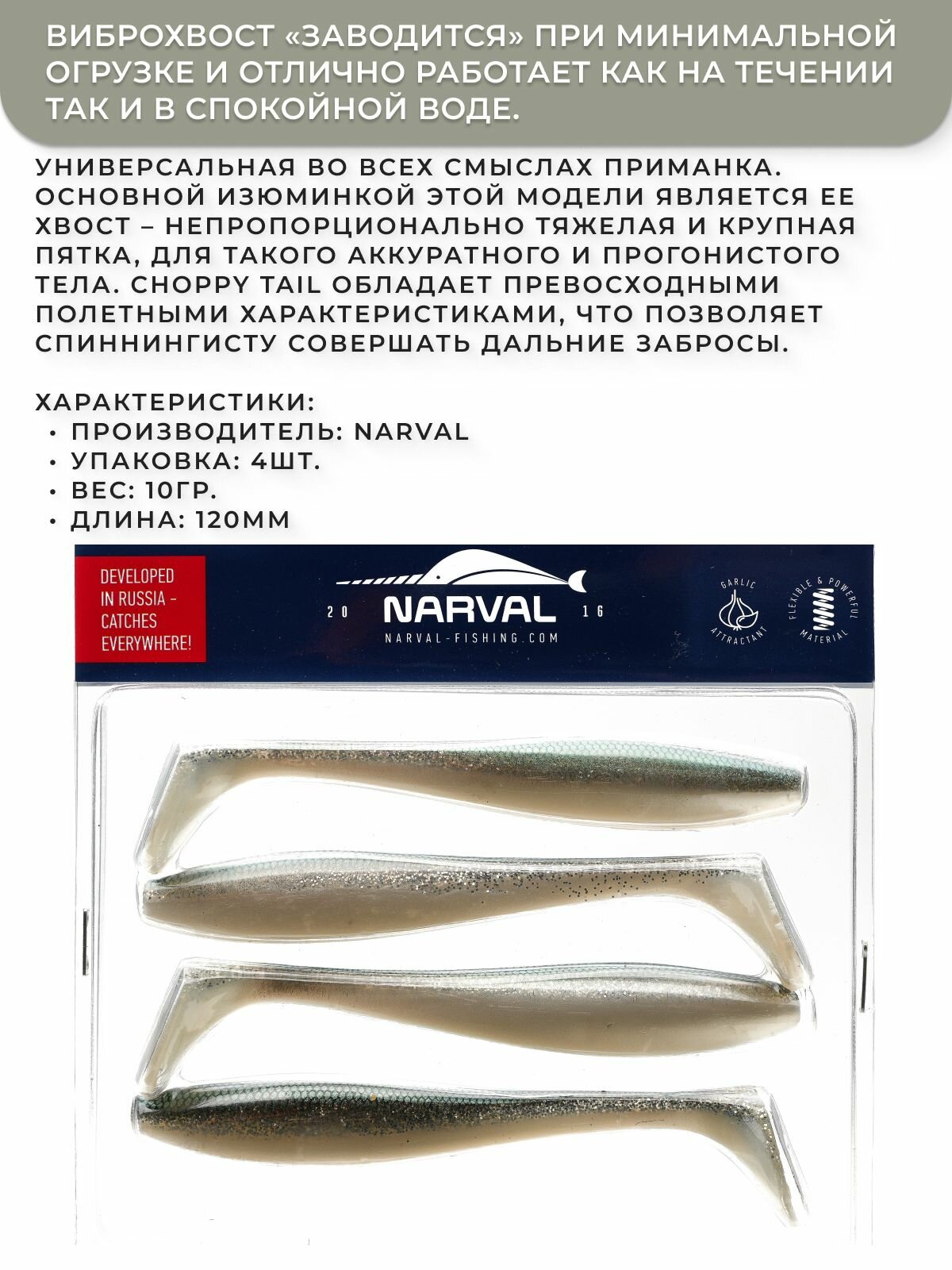 Приманка силиконовая Narval Choppy Tail 10cm #053-Phantom / Мягкая приманка для джига