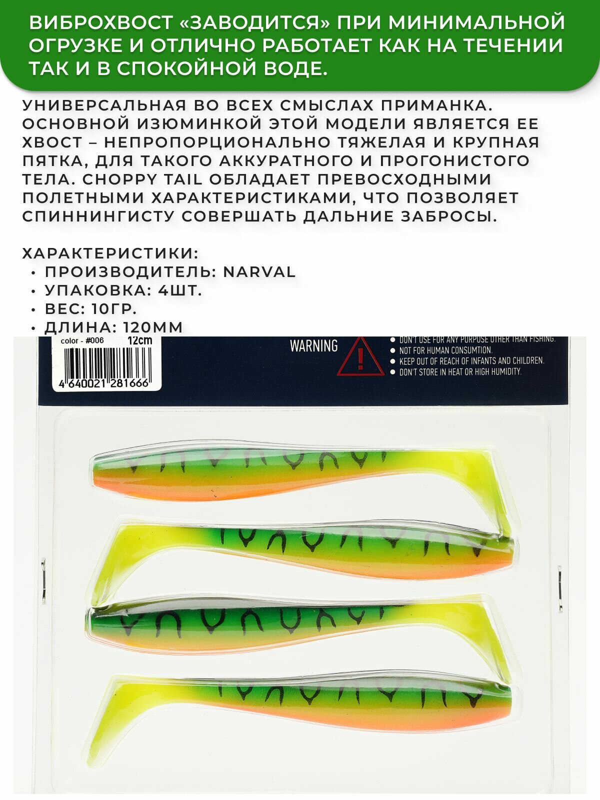 Ниже Вы можете прочитать отзывы на Приманка силиконовая Narval Choppy Tail 12cm #006-Mat Tiger / Мягкая приманка для джига, ознакомится с подробными характеристиками, посмотреть интересные обзоры и фотографии на Приманка силиконовая Narval Choppy Tail 12cm #006-Mat Tiger / Мягкая приманка для джига.