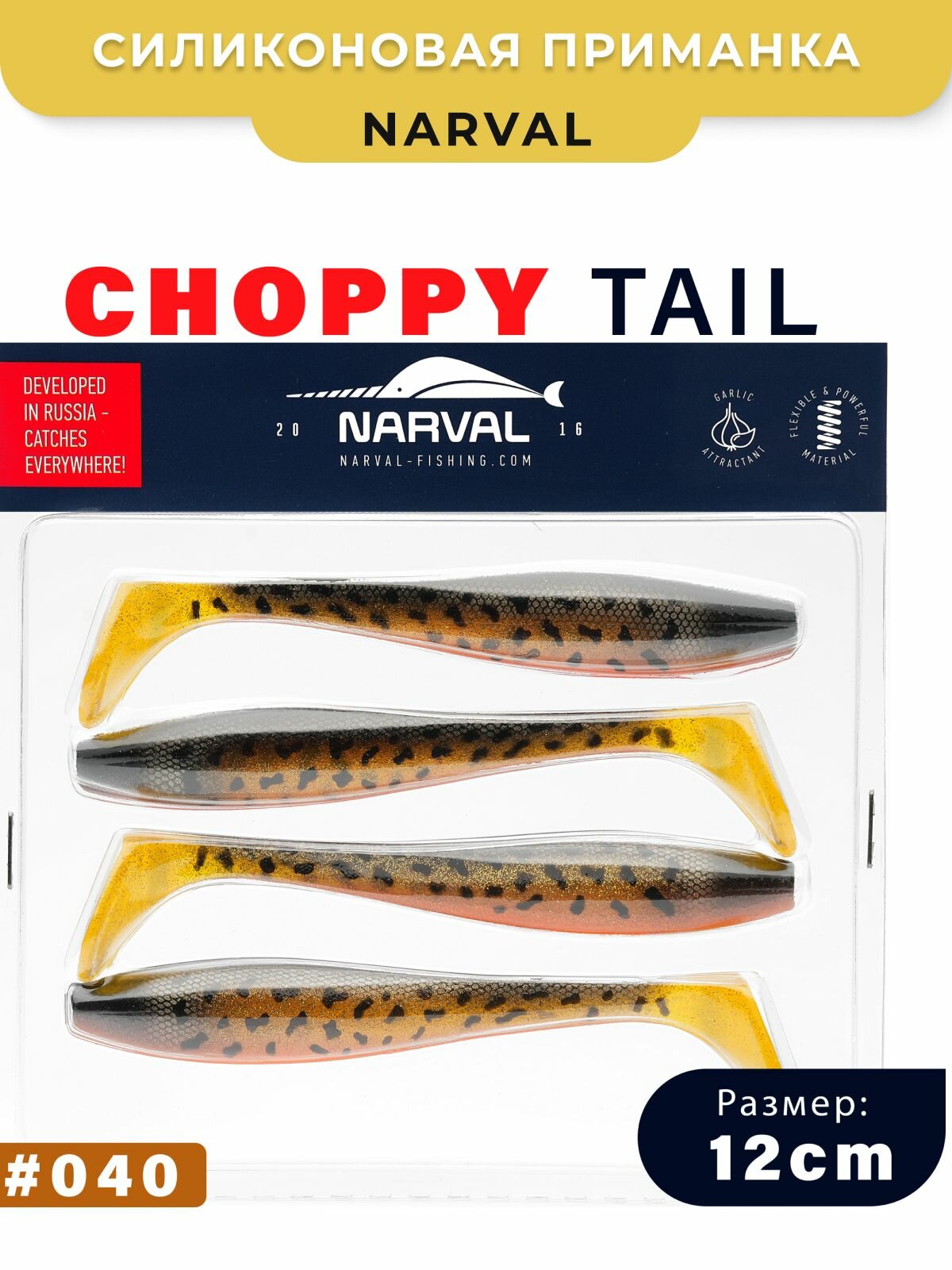 Приманка силиконовая Narval Choppy Tail 10cm #006-Mat Tiger / Мягкая приманка для джига