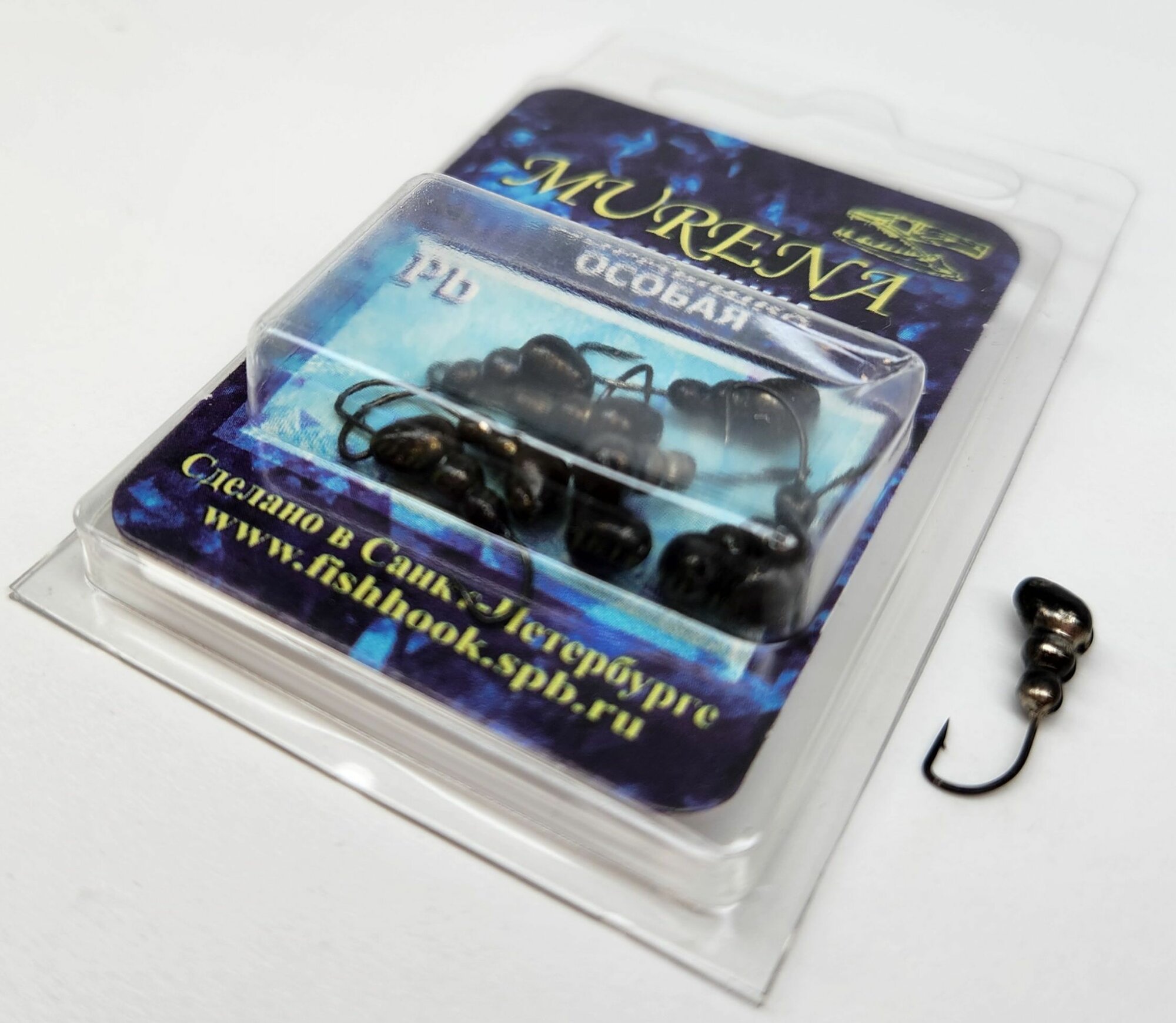 Мормышка Murena уралка с отверстием d-5 цвет Никель с фосфорной пяткой насадочная мурена