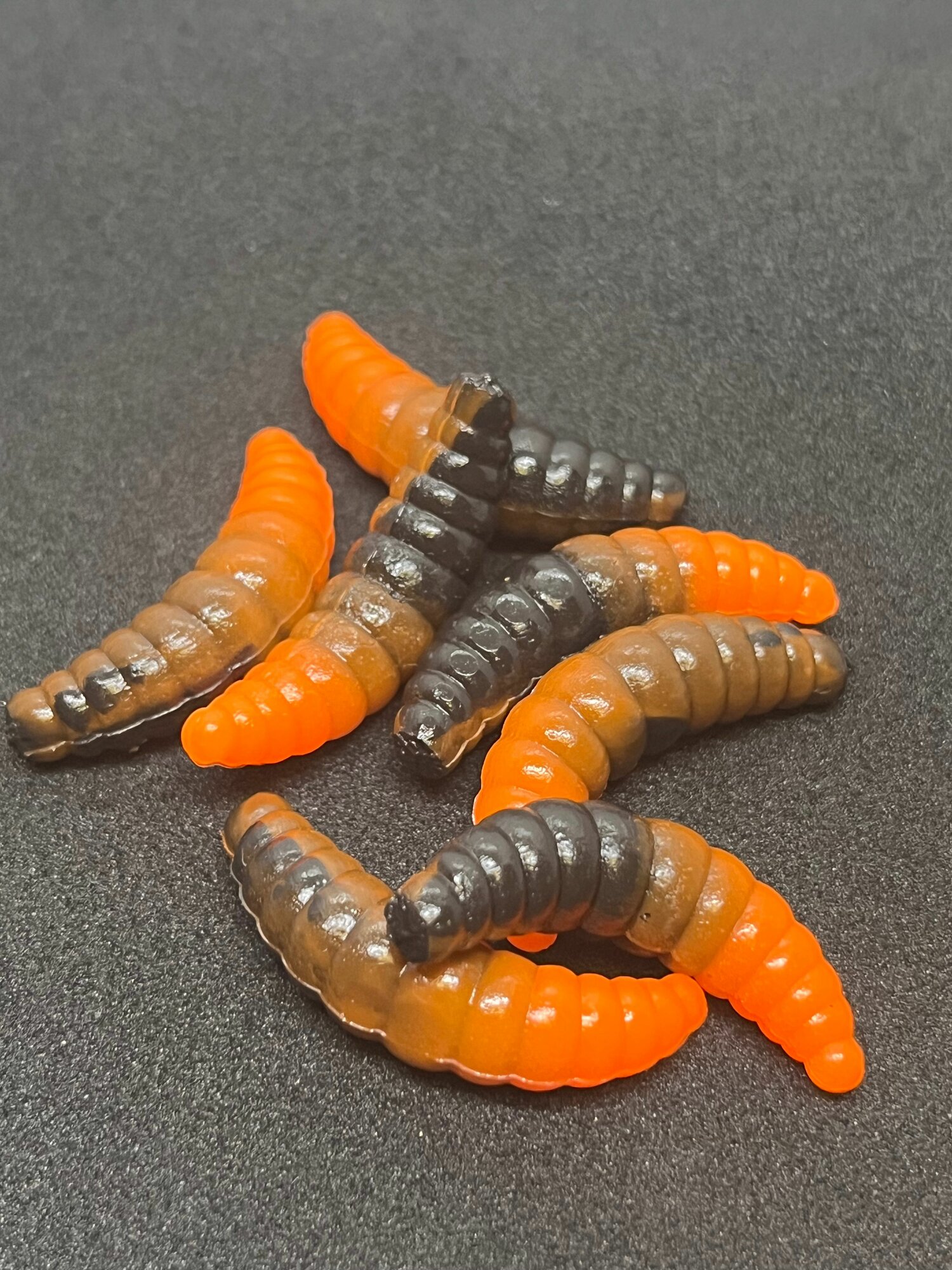 Купить Съедобная, плавающая силиконовая приманка. Maggot 1.3 Чёрный- оранжевый