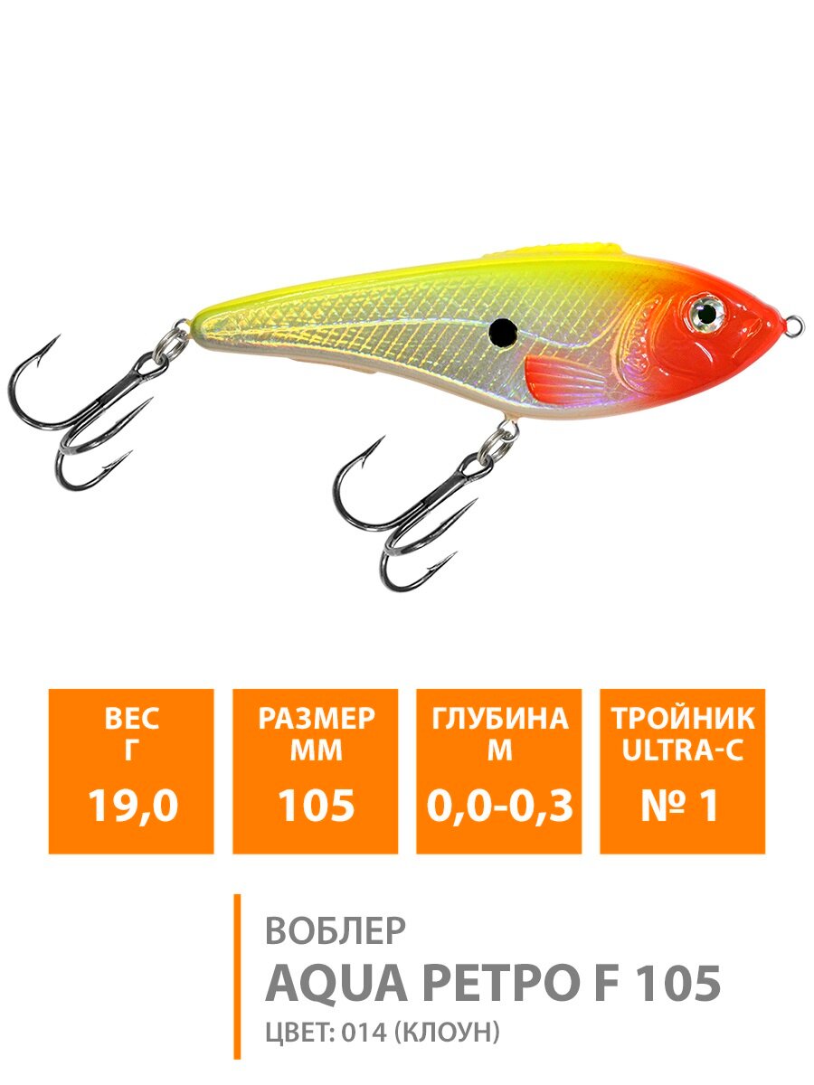 СохранитьВоблер для рыбалки плавающий AQUA Ретро 105mm 19g. Приманка джеркбейт на спиннинг, на щуку, судака, окуня цвет 014 интересное: