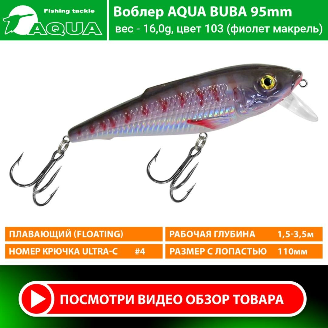Ниже Вы можете прочитать отзывы на Воблер для рыбалки плавающий AQUA Buba 95mm 16g заглубление от 1.5 до 3,5m цвет 103, ознакомится с подробными характеристиками, посмотреть интересные обзоры и фотографии на Воблер для рыбалки плавающий AQUA Buba 95mm 16g заглубление от 1.5 до 3,5m цвет 103.
