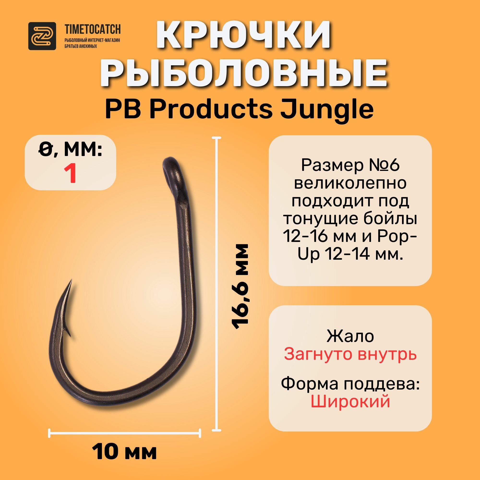 Крючки рыболовные PB Products Jungle DBF №6 10шт / крючки / пб продуктс интересное:
