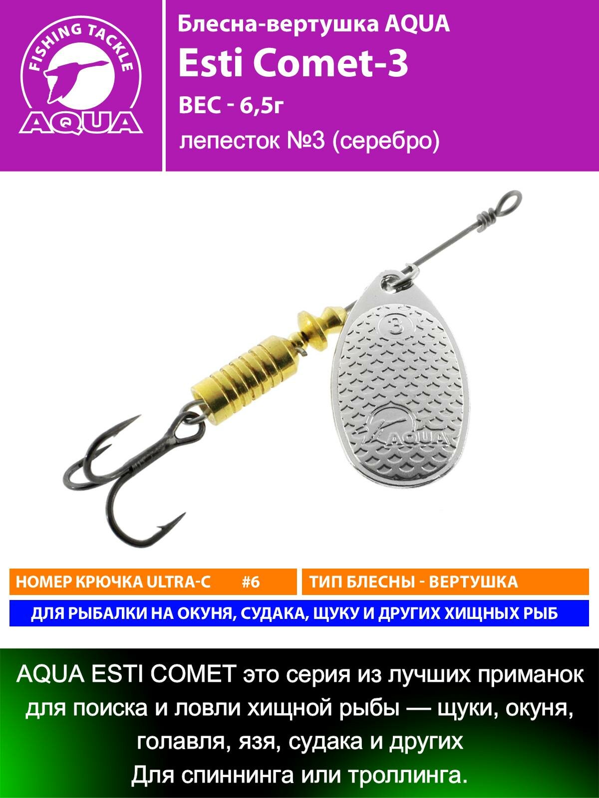 СохранитьБлесна для рыбалки AQUA Esti Comet-3 6,5g на окуня судака щуку форель лепесток №3 (серебро) интересное: