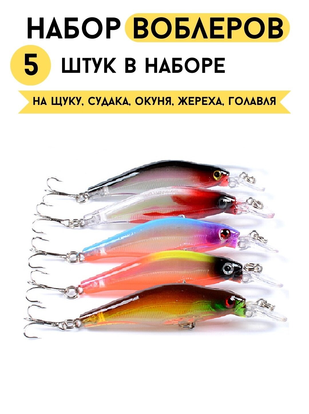 Купить Набор Воблеров рыболовных плавающих 5 шт крэнк 6,5 г