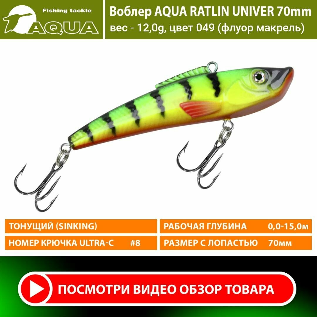 Купить Воблер для рыбалки тонущий AQUA Ratlin Univer 70mm 12g цвет 049