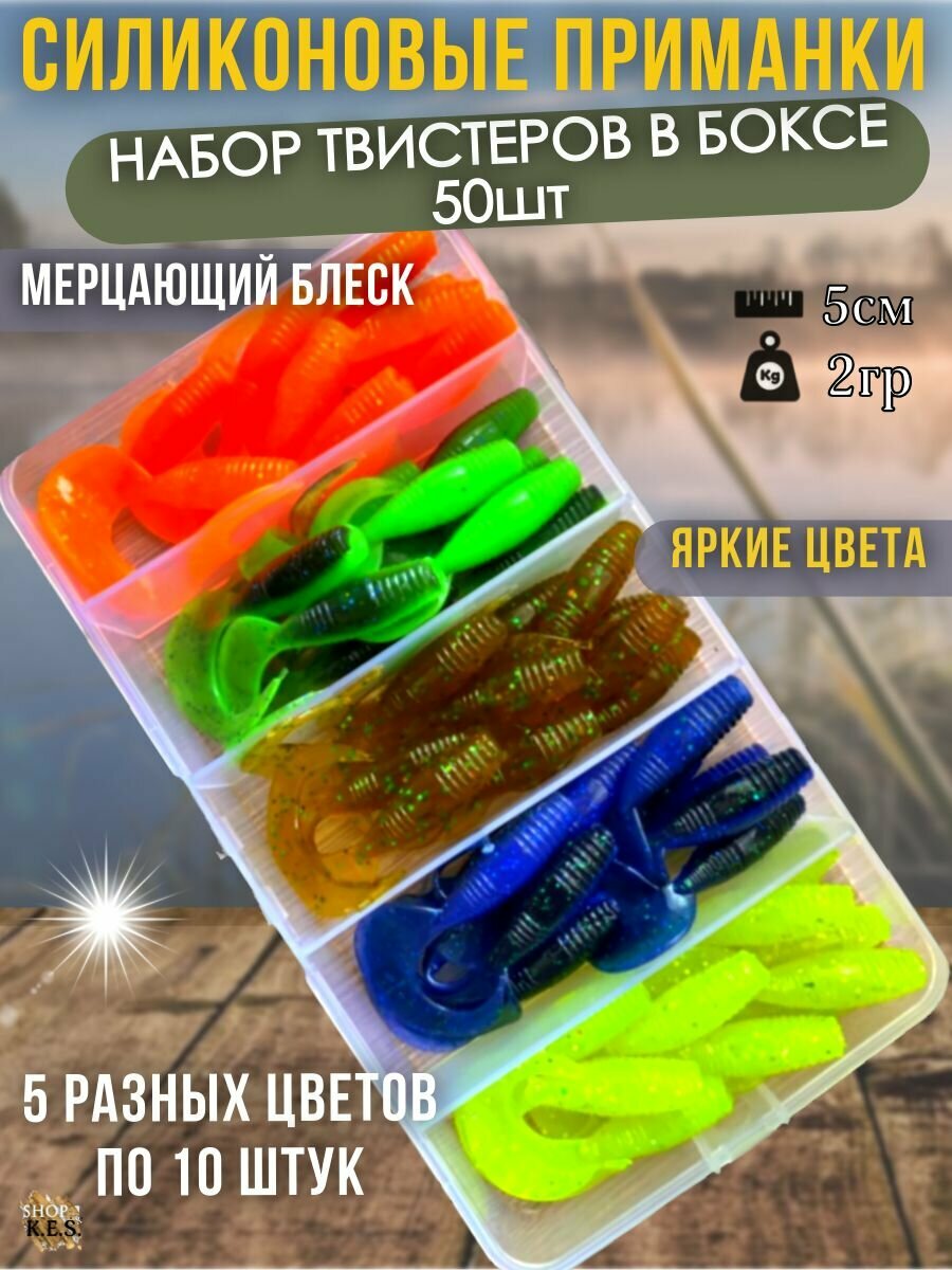 Твистеры (съедобная резина) 50мм 50шт в боксе, силиконовые приманки для рыбалки интересное: