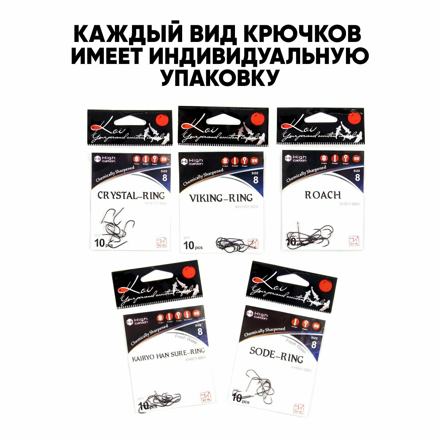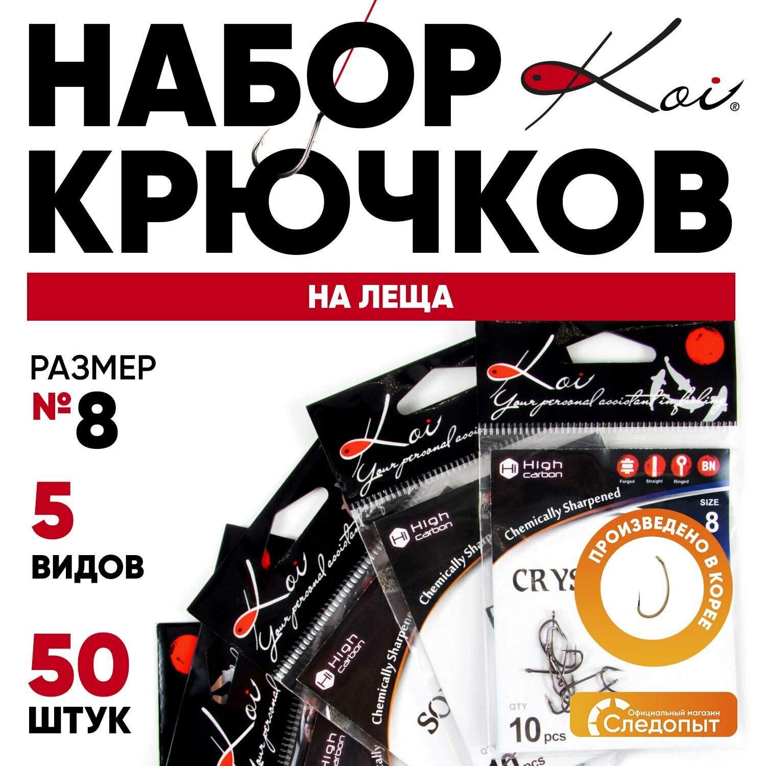 Купить Набор крючков KOI "Лещ", одинарные, для фидера, на леща, 50 штук
