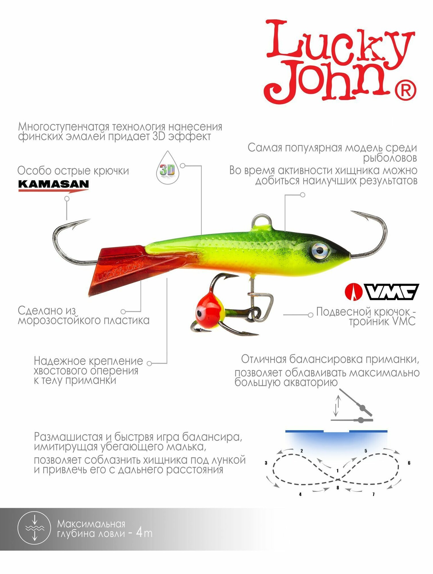 Балансир рыболовный для зимней рыбалки Lucky John Classic 4.5 + тр. 50мм/12HRT блистер