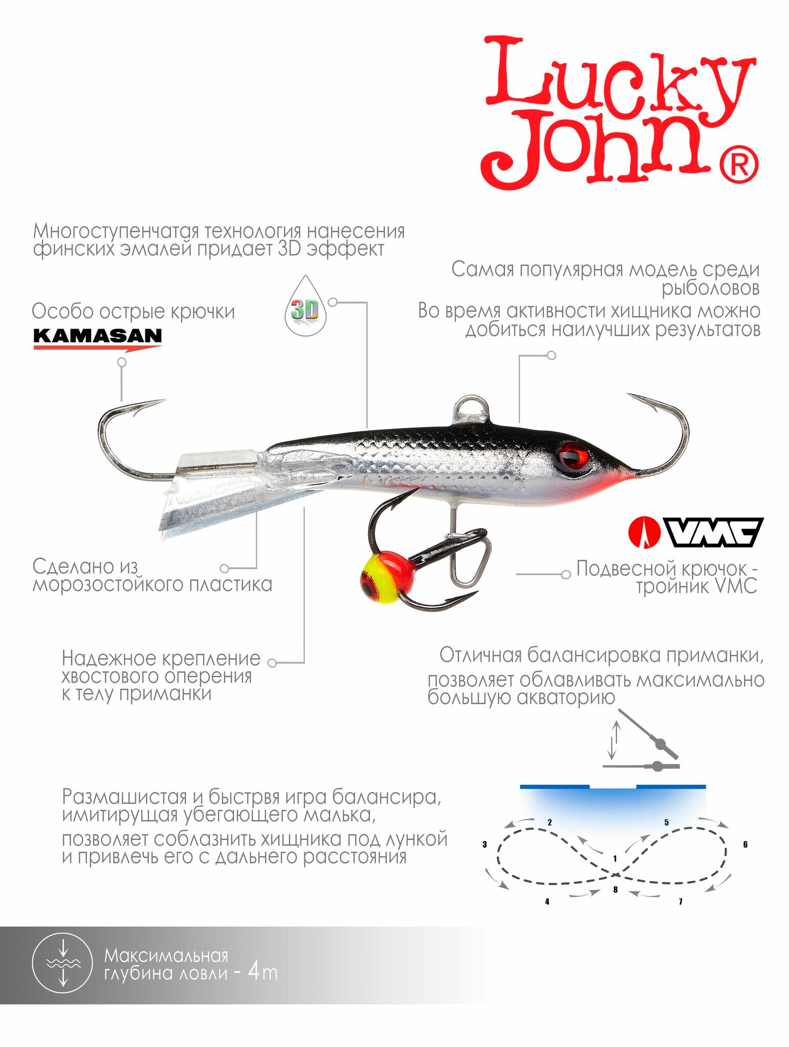 Балансир для рыбалки lucky john CLASSIC 4.5 с тр. 50мм/53 блистер, зимние снасти рыболовные с крючком, приманка силиконовая