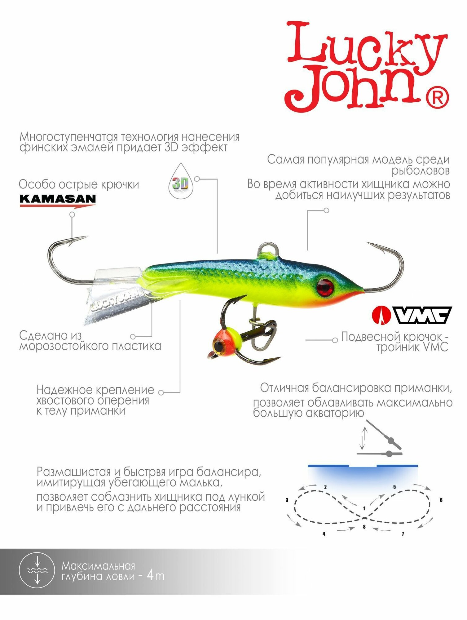 Балансир для рыбалки lucky john CLASSIC 4.5 с тр. 50мм/53 блистер, зимние снасти рыболовные с крючком, приманка силиконовая