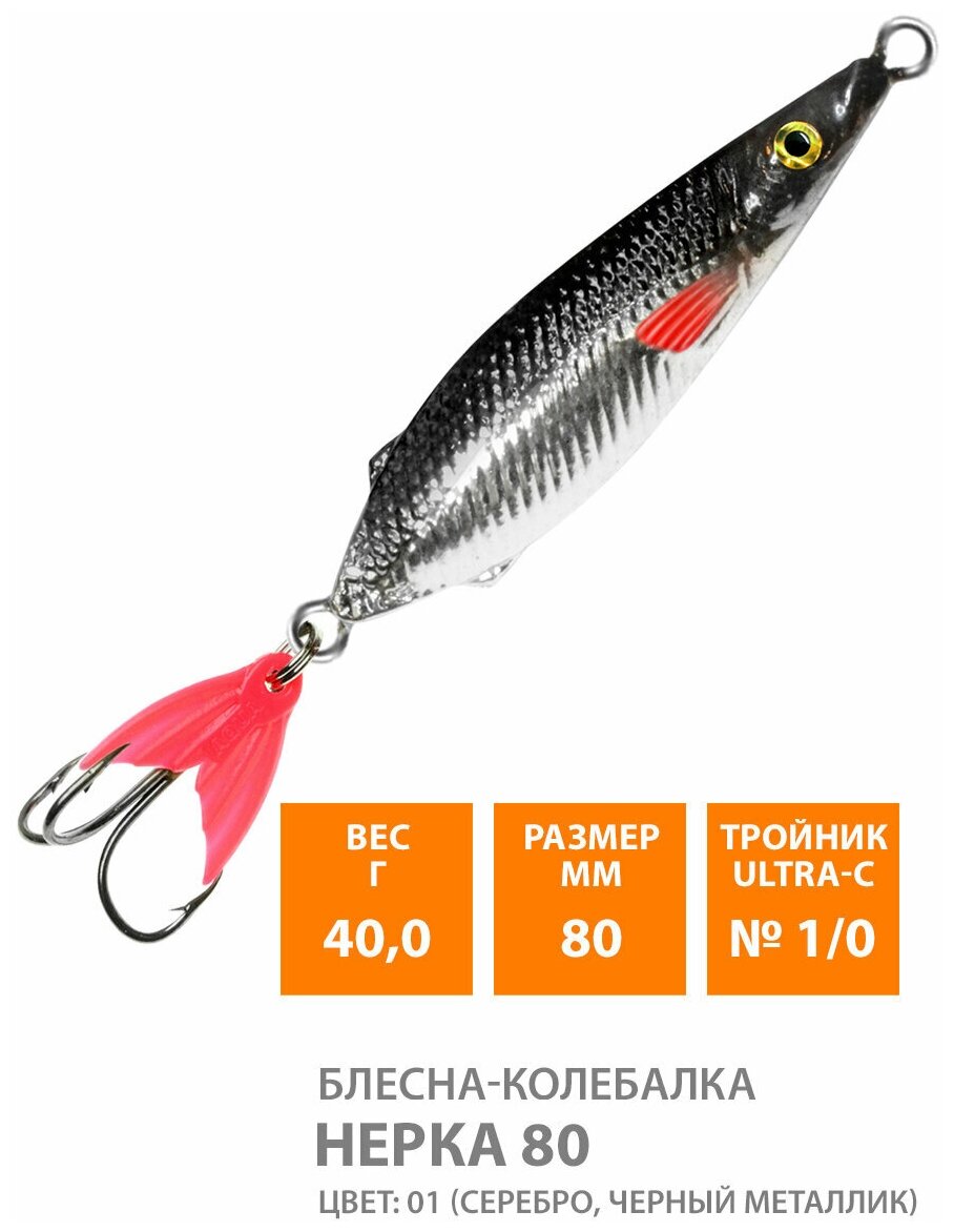 Купить Блесна колебалка для рыбалки AQUA Нерка 80mm 40g цвет 01