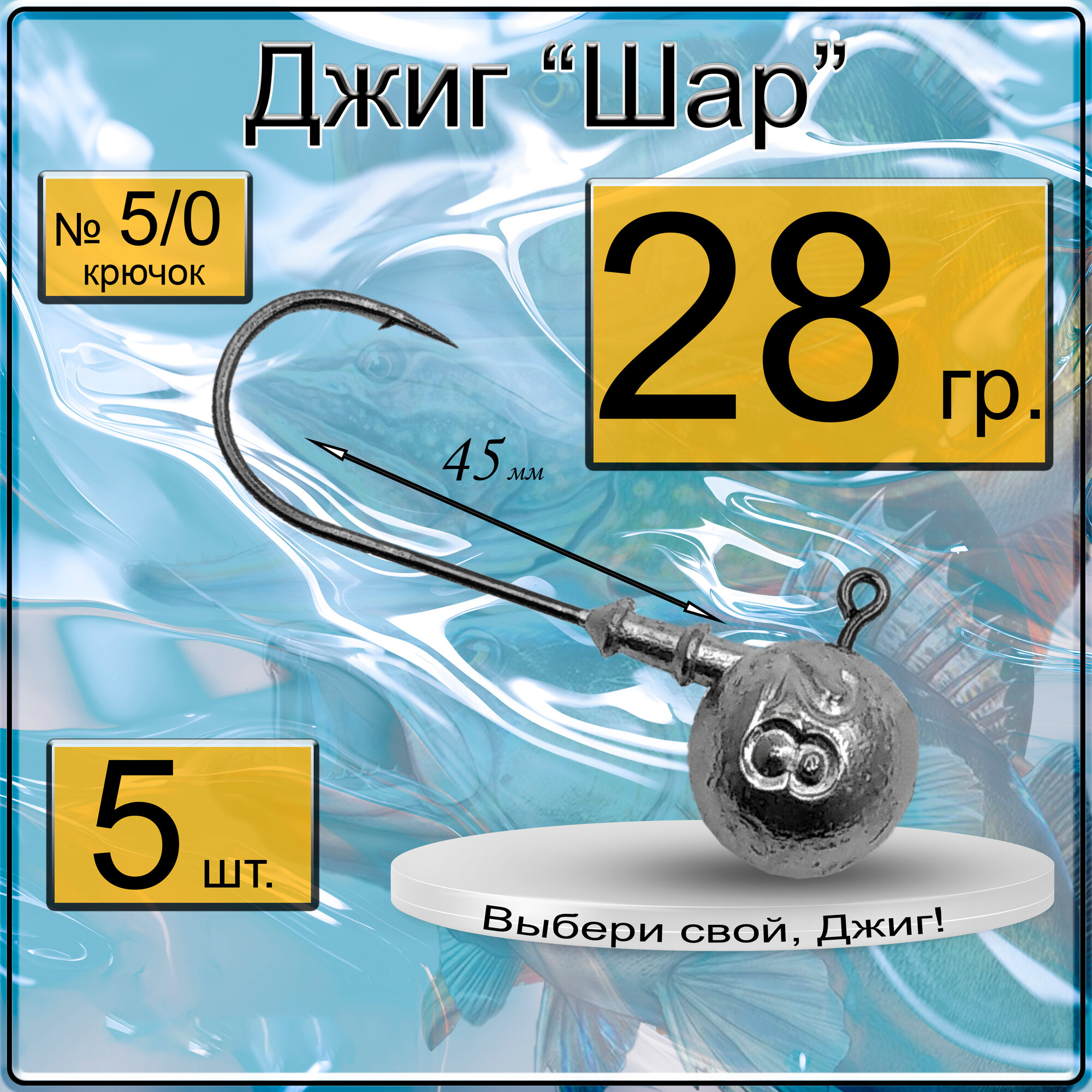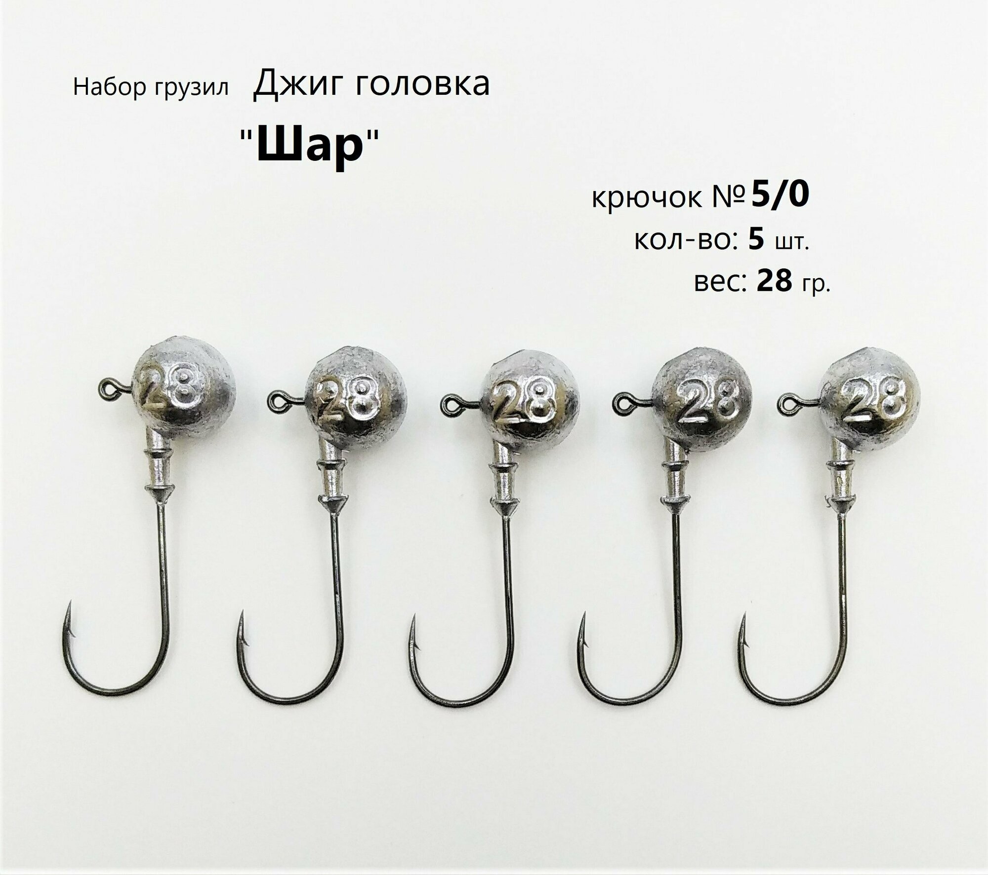 Джиг-головка "Шар" 28 гр. (крючок № 4/0), (в уп. 5 шт.)